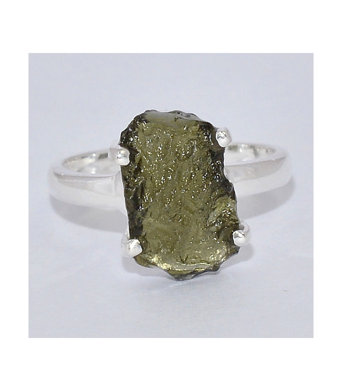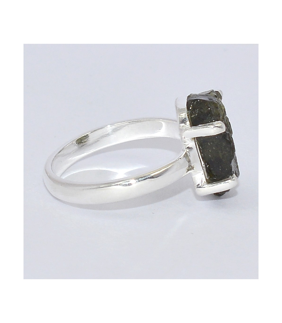 Bague en Moldavite Brute Authentique – Argent 925 Taille 52