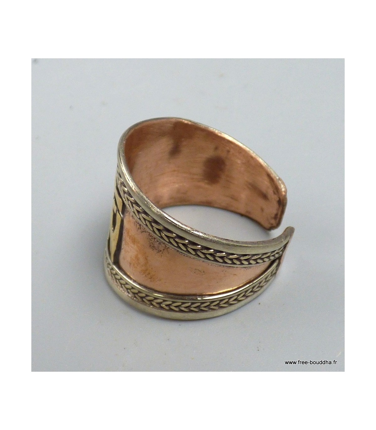 Bague bouddhiste Om cuivre et laiton taille 56 à 64 - Fait au Népal