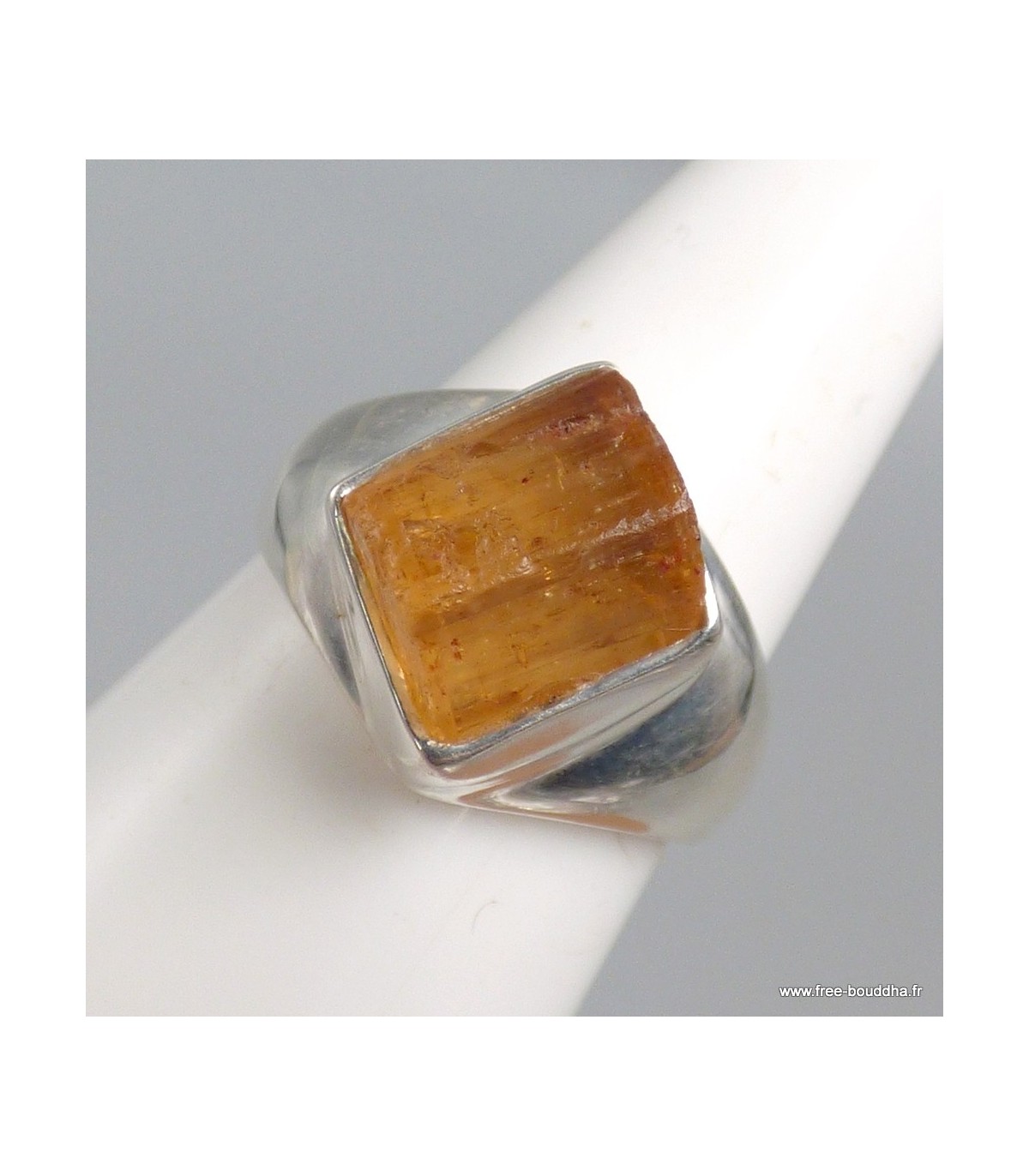 La pierre brute est montée sur une base en argent massif 925 poinçonné, offrant solidité, élégance et confort. Une pièce de caractère, idéale pour celles et ceux qui apprécient les pierres naturelles non polies et l’énergie rayonnante de la Topaze Impériale.