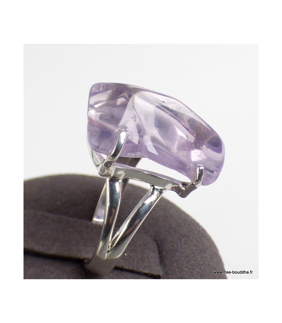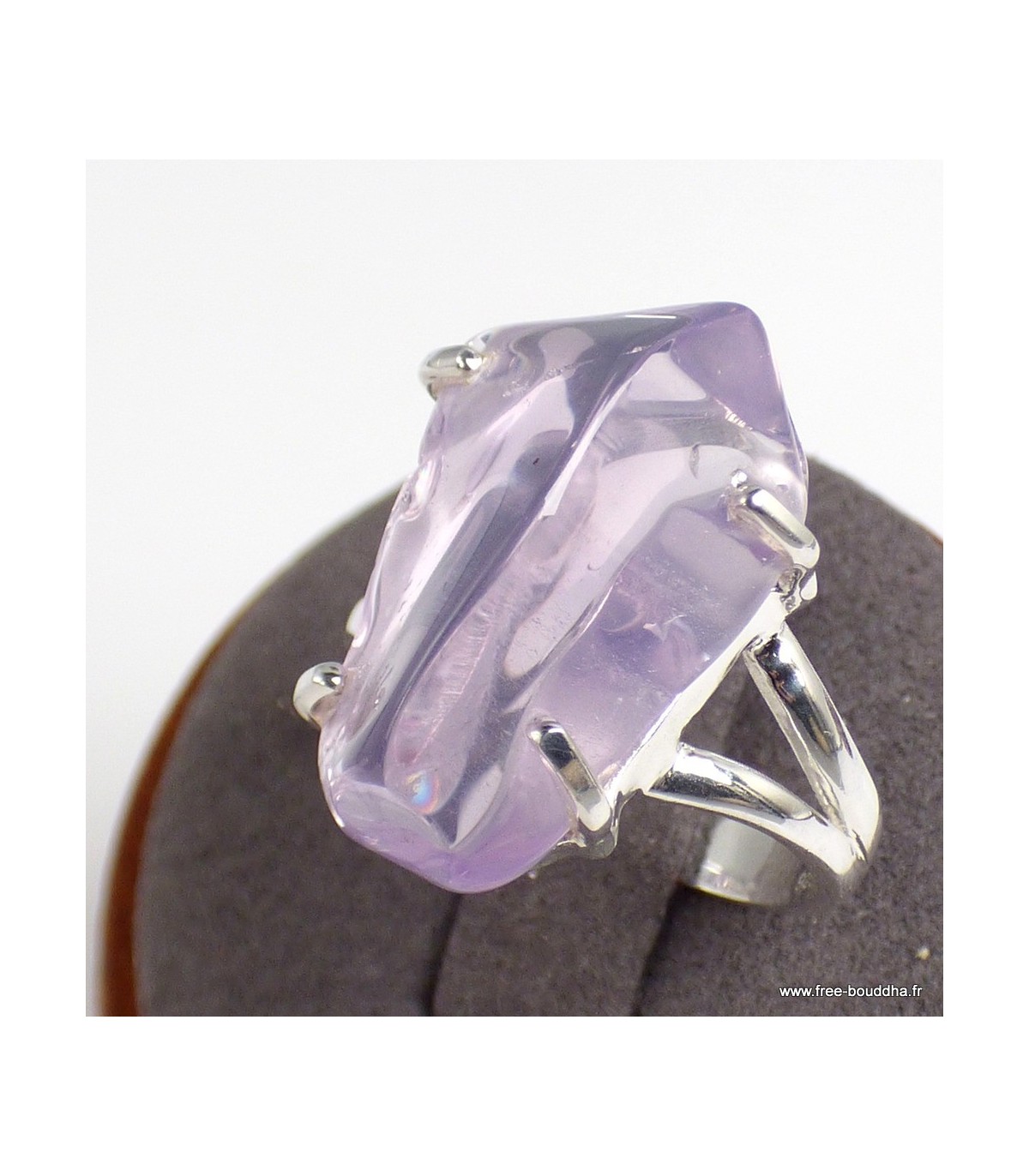 Cette bague unique met en lumière un quartz lavande brut, pierre rare à la teinte lilas rosée naturellement douce et apaisante. Sa texture brute préserve l’authenticité de la pierre, révélant ses inclusions naturelles et son éclat translucide. Montée sur une base en argent massif 925 poinçonné, elle allie force minérale et élégance artisanale.