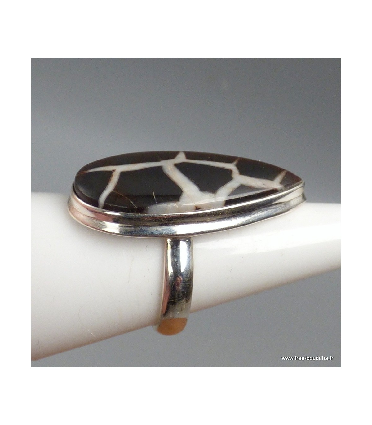 Bague goutte en Septarian noir – Taille 58 – Argent 925