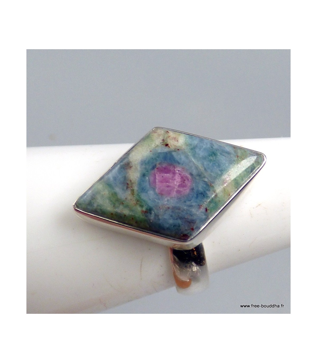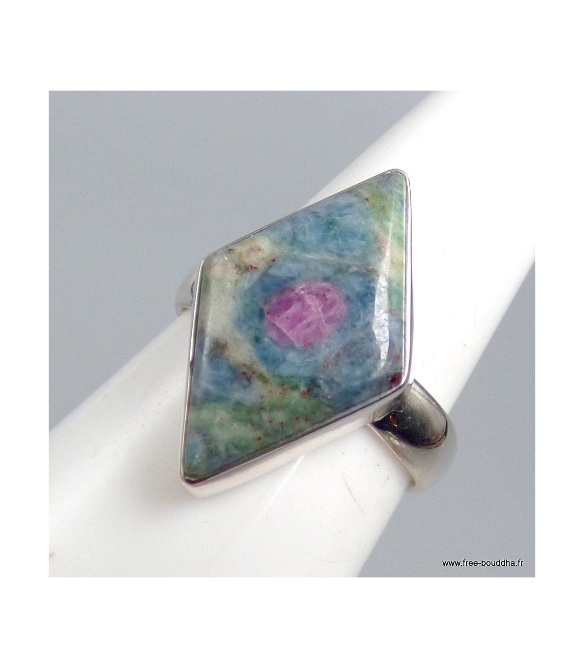 Bague goutte Rubis sur Fuchsite losange – Argent 925 Taille 55/56