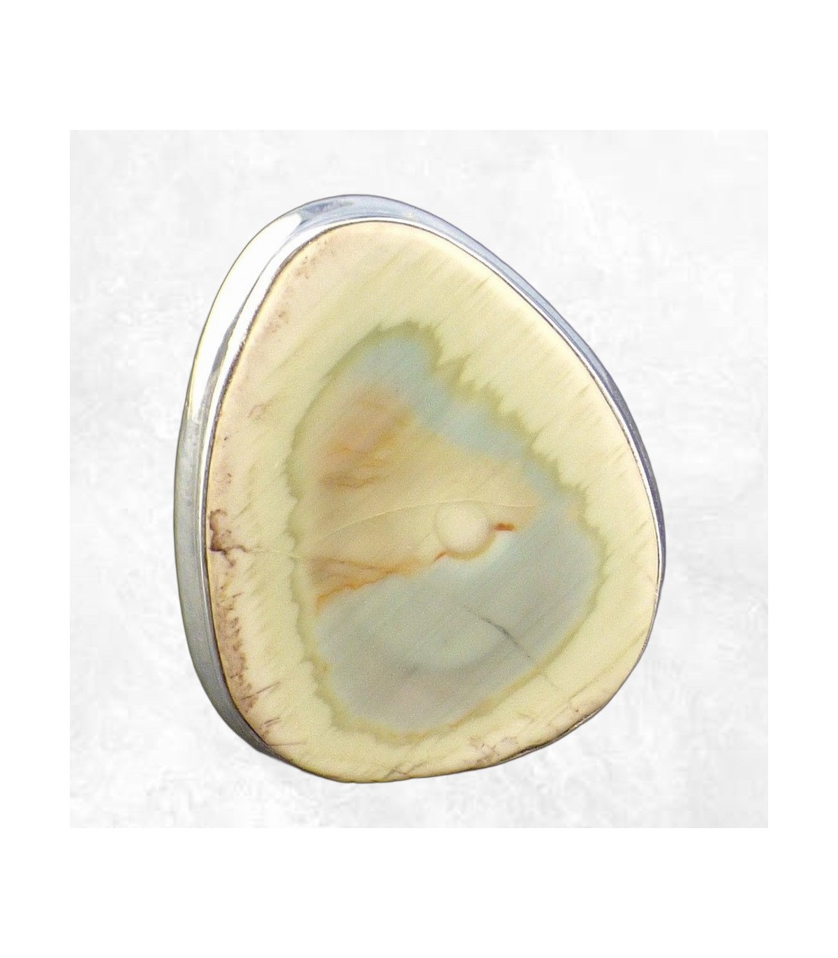 Élégante et raffinée, cette bague met en valeur un authentique Jaspe Impérial vert pâle, pierre naturelle aux nuances douces et apaisantes. Sertie dans une monture en argent massif 925 poinçonné, elle séduit par son design harmonieux et ses dimensions généreuses.