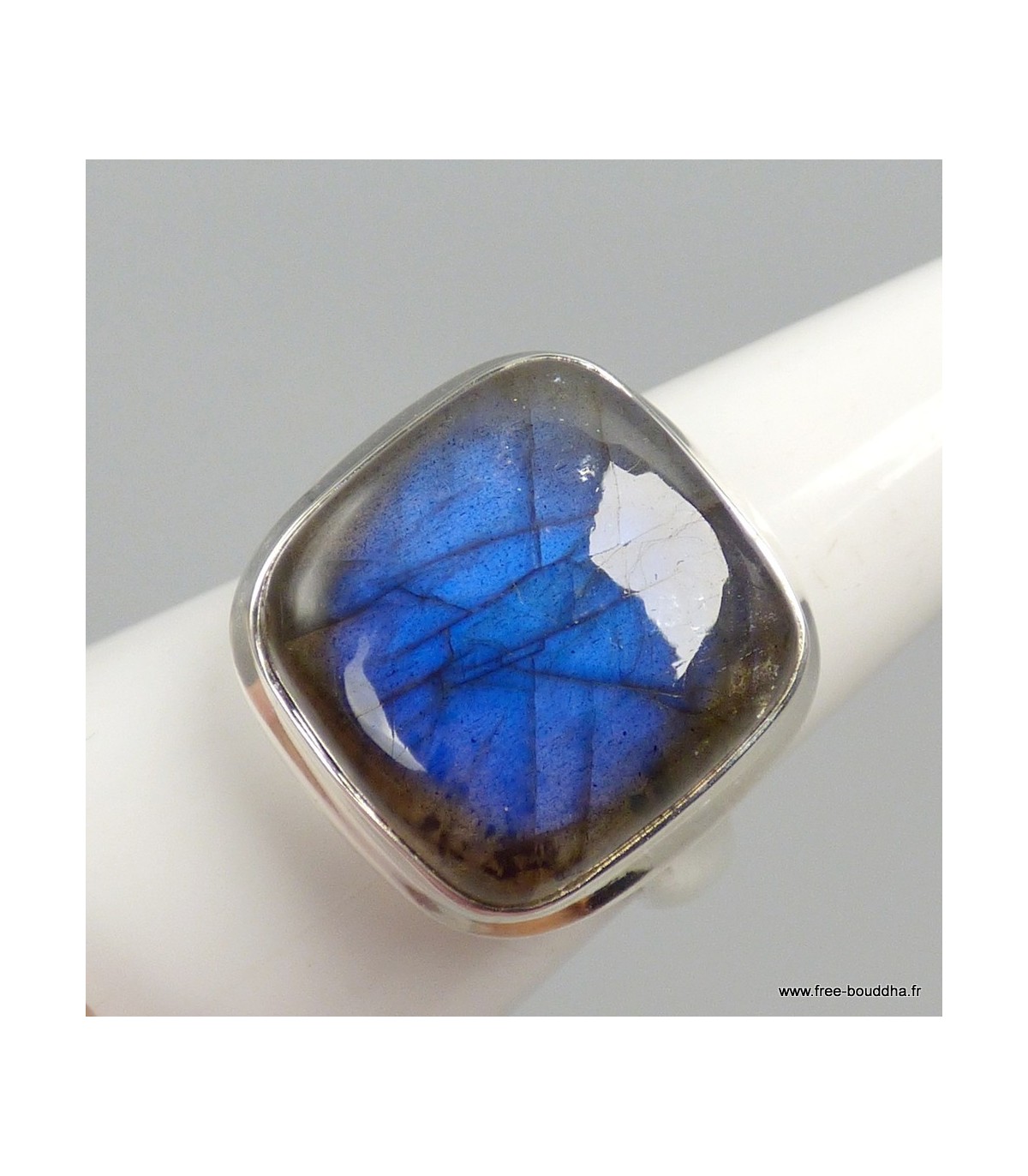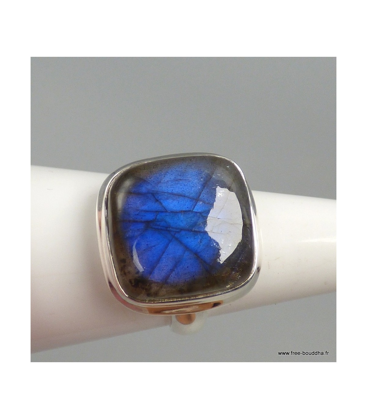 Bague carrée en Labradorite bleue et argent 925 – Taille 61
