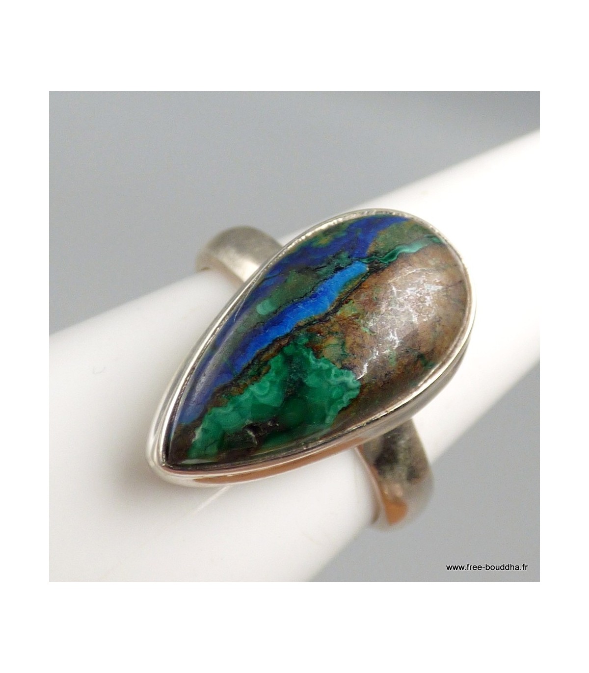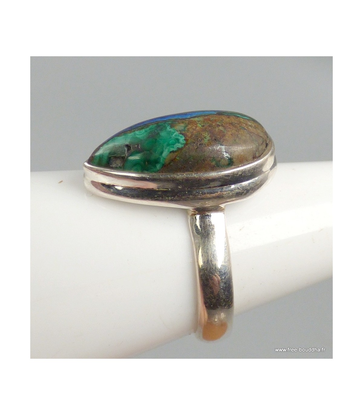 Bague en Malachite sur Azurite – Argent 925 certifié – Taille 59