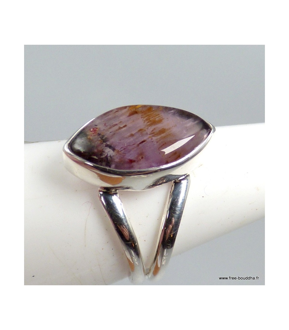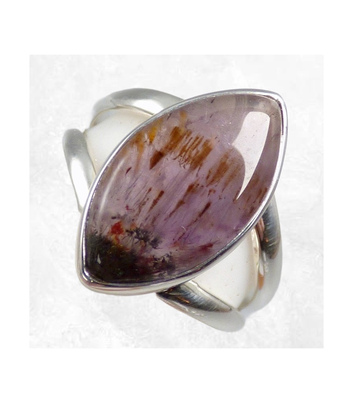 Cette bague raffinée met en valeur une véritable Cacochynite Super Seven du Brésil, taillée en forme marquise pour sublimer ses reflets naturels. Montée sur argent 925 poinçonné et certifié, elle allie élégance et puissance énergétique.