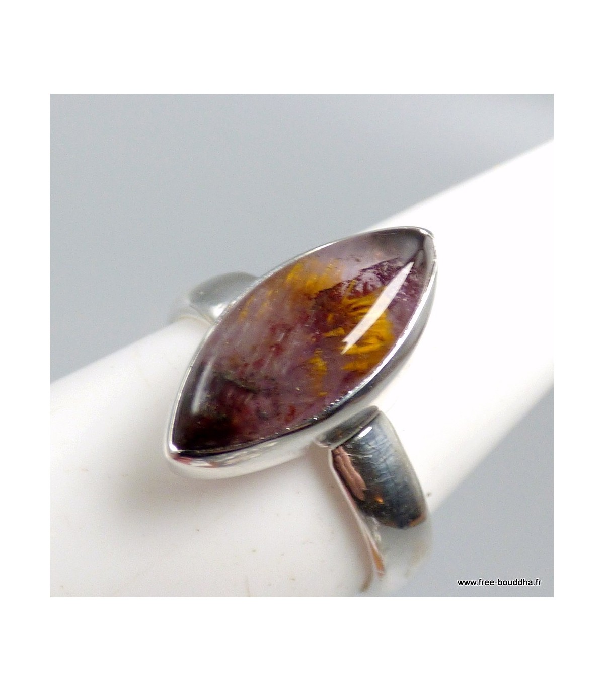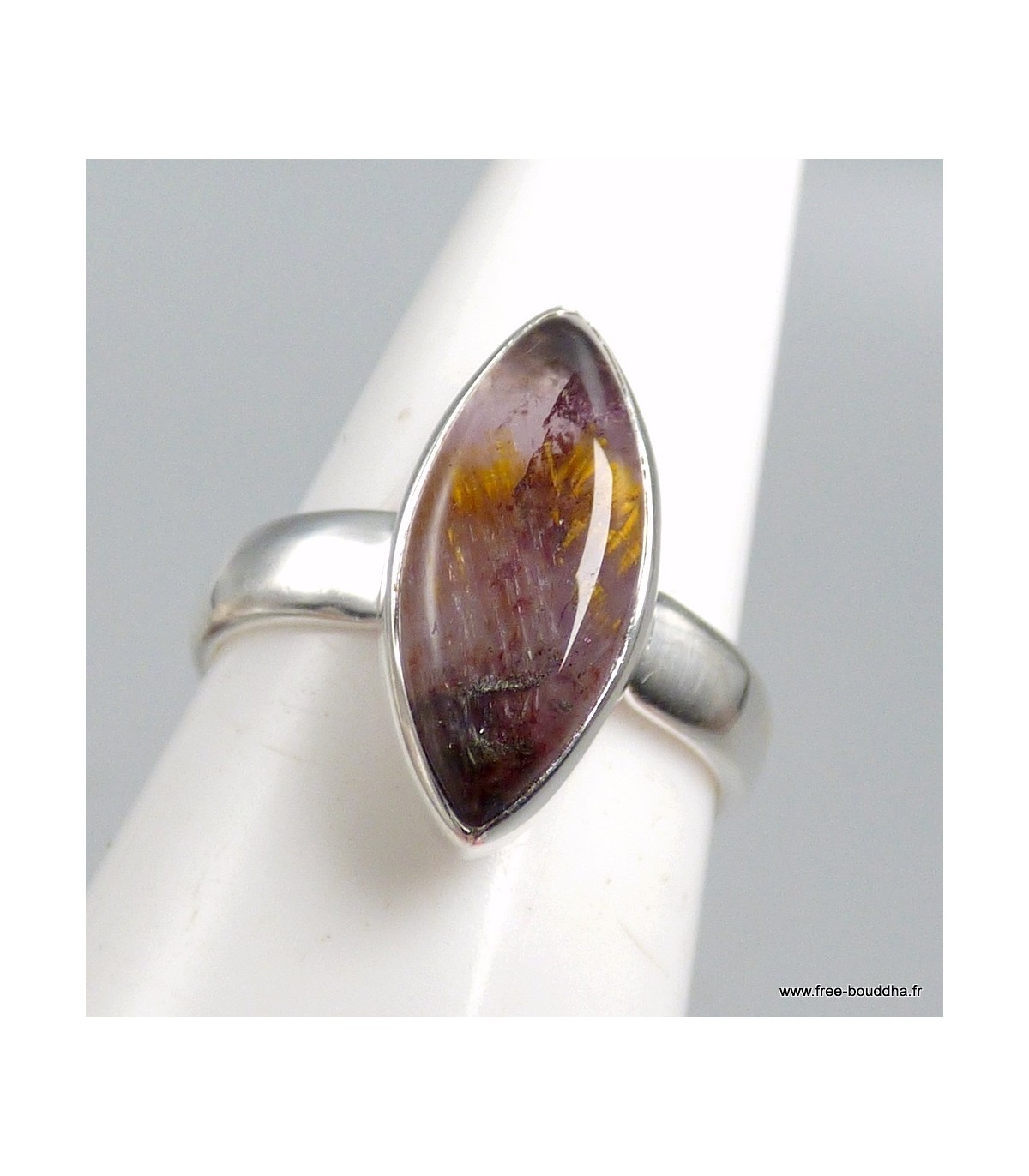 Cette bague raffinée met en valeur une véritable Cacochynite Super Seven du Brésil, taillée en forme marquise pour sublimer ses reflets naturels. Montée sur argent 925 poinçonné et certifié, elle allie élégance et puissance énergétique.