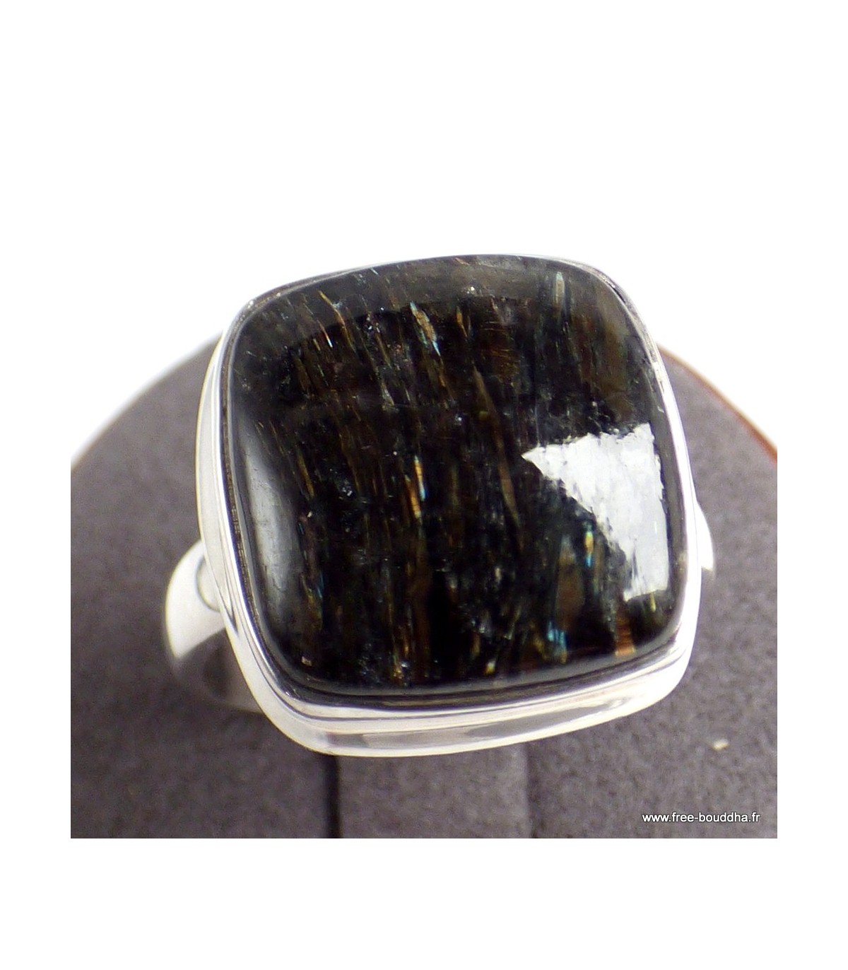 Cette bague puissante met en lumière une Nuummite naturelle Grade AAA, extraite des terres anciennes du Groenland. Connue comme l’une des pierres les plus anciennes de la planète, la Nuumite révèle des reflets noirs profonds, traversés de paillettes dorées et iridescentes. Taillée en forme carrée de 1,5 cm de côté, elle est sertie sur une monture en argent massif 925 poinçonné, soulignant son caractère brut et sa force vibratoire. Livrée avec certificat d’authenticité, elle incarne une présence minérale rare et structurante.