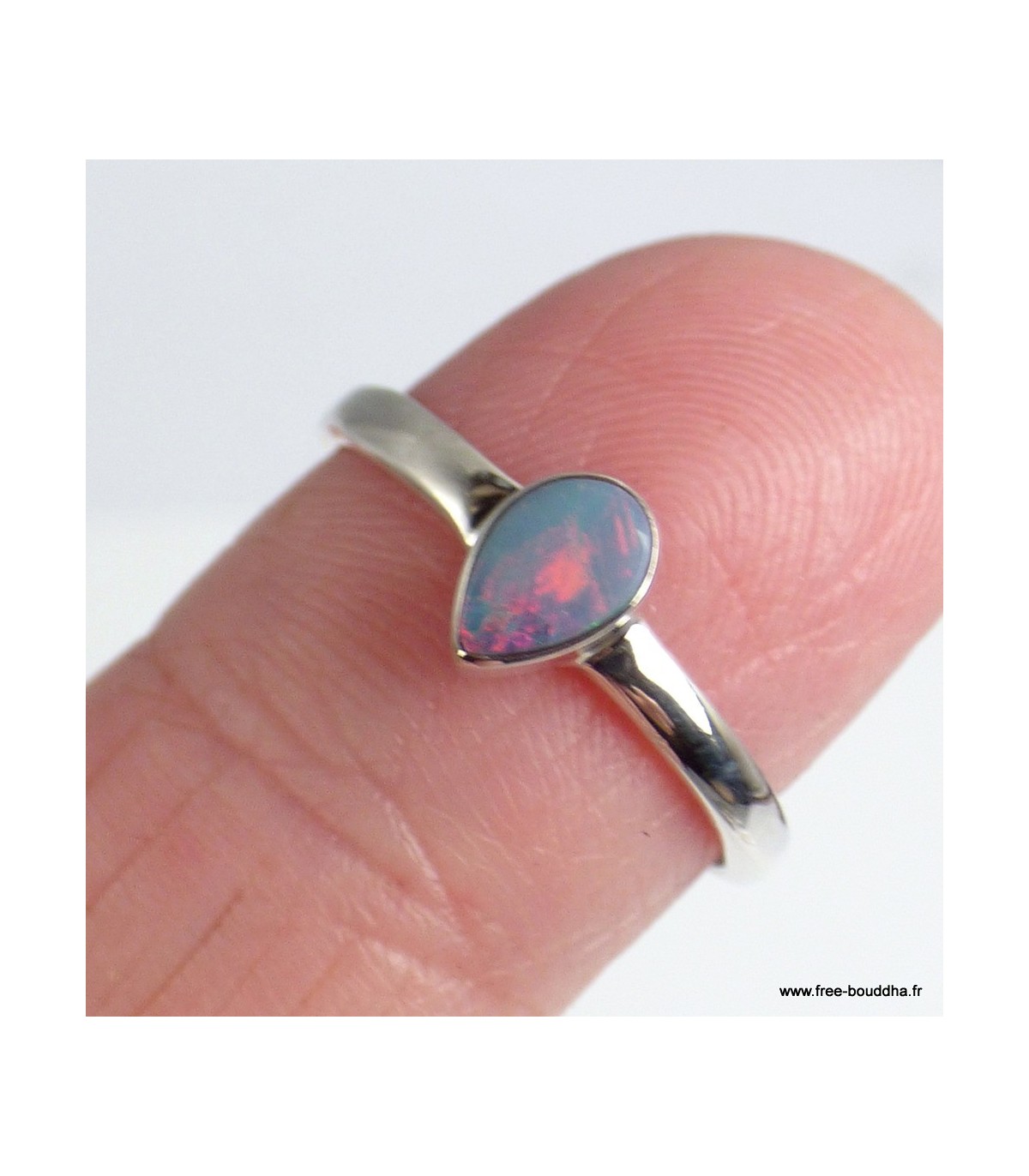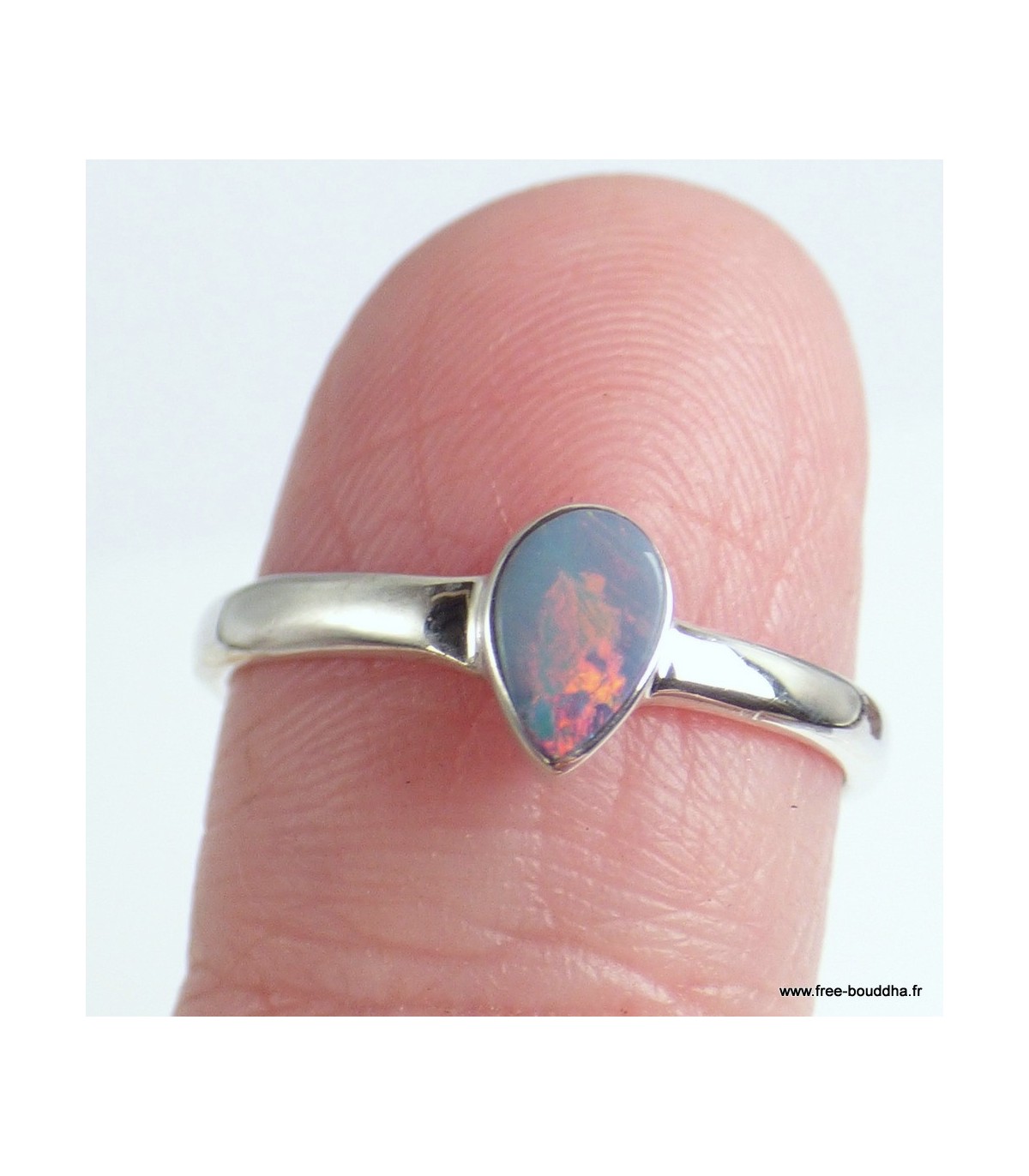 Bague en opale australienne – forme goutte – argent 925 – taille 56/57