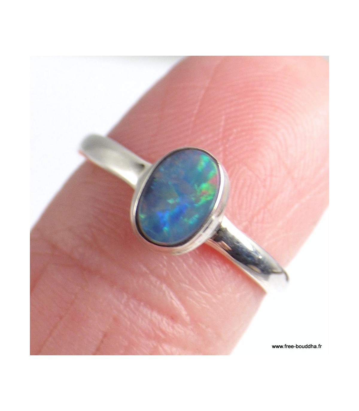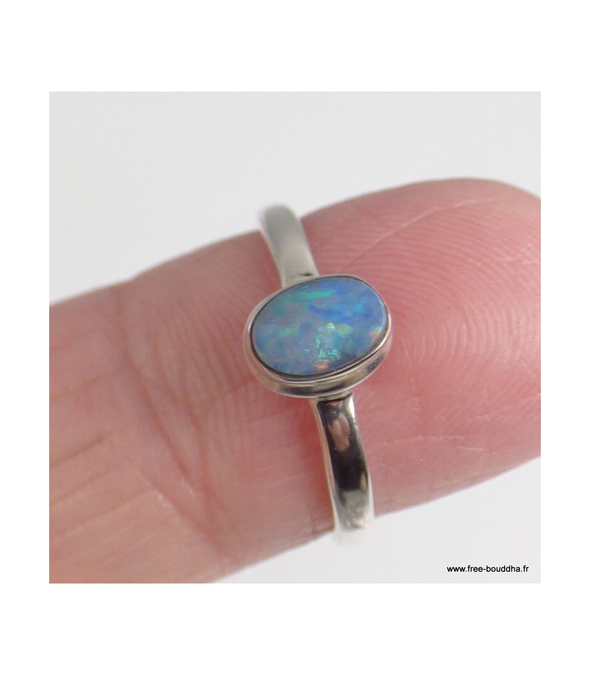 Bague en opale australienne – ovale – argent 925 – taille 54