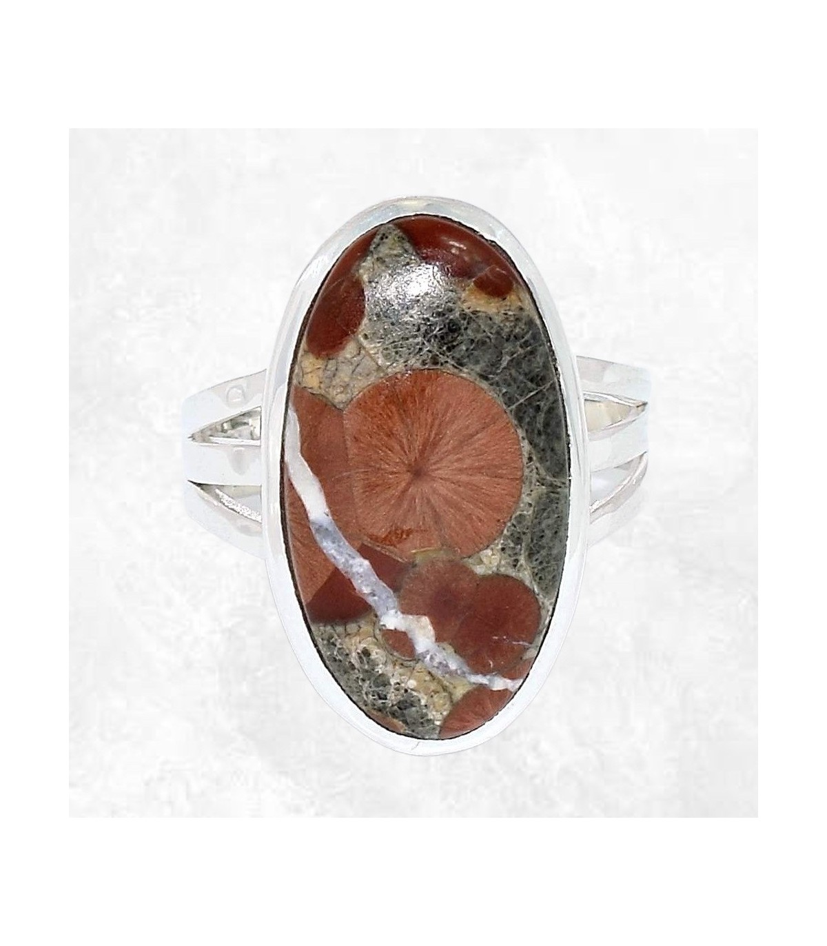Cette bague met en valeur une Obsidienne Peanut authentique, une variété rare d’obsidienne reconnaissable à ses motifs bruns, crème et chocolat évoquant la texture d’une cacahuète. Sa forme ovale révèle parfaitement ces dessins naturels uniques. Montée sur une base en argent massif 925 poinçonné, elle offre un bijou expressif, chaleureux et profondément authentique.