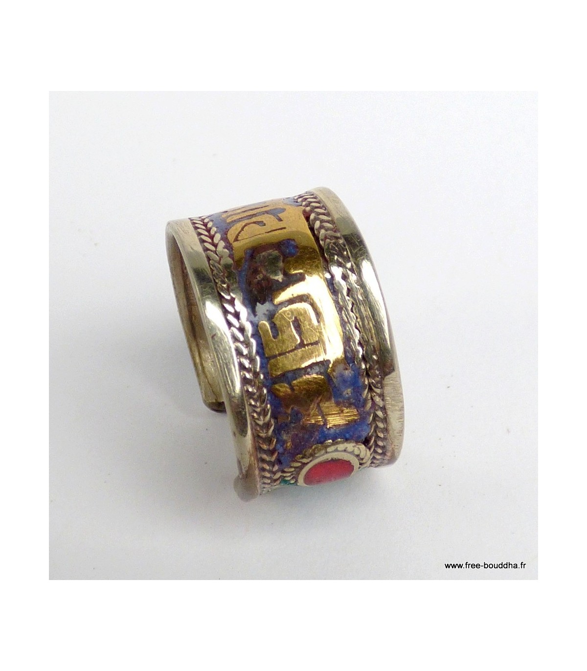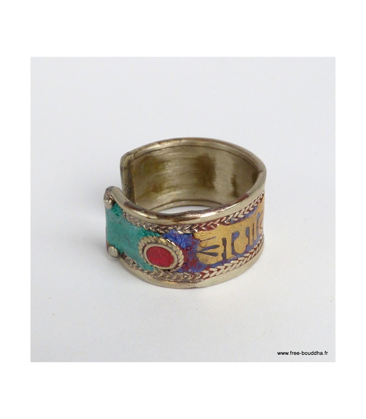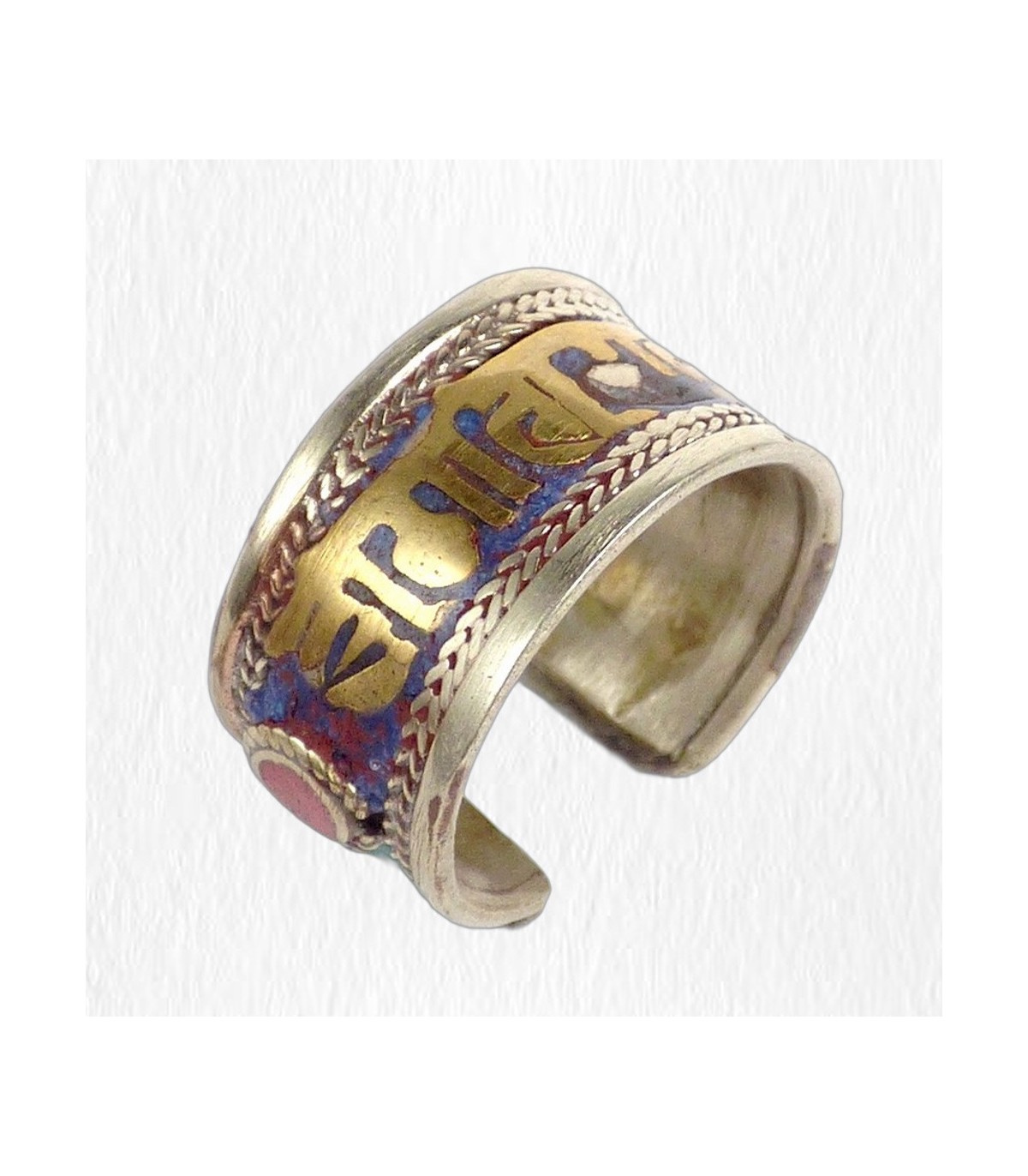 Bague Tibétaine Bicolore – Mantra de Chenrezi – Métal & Résine