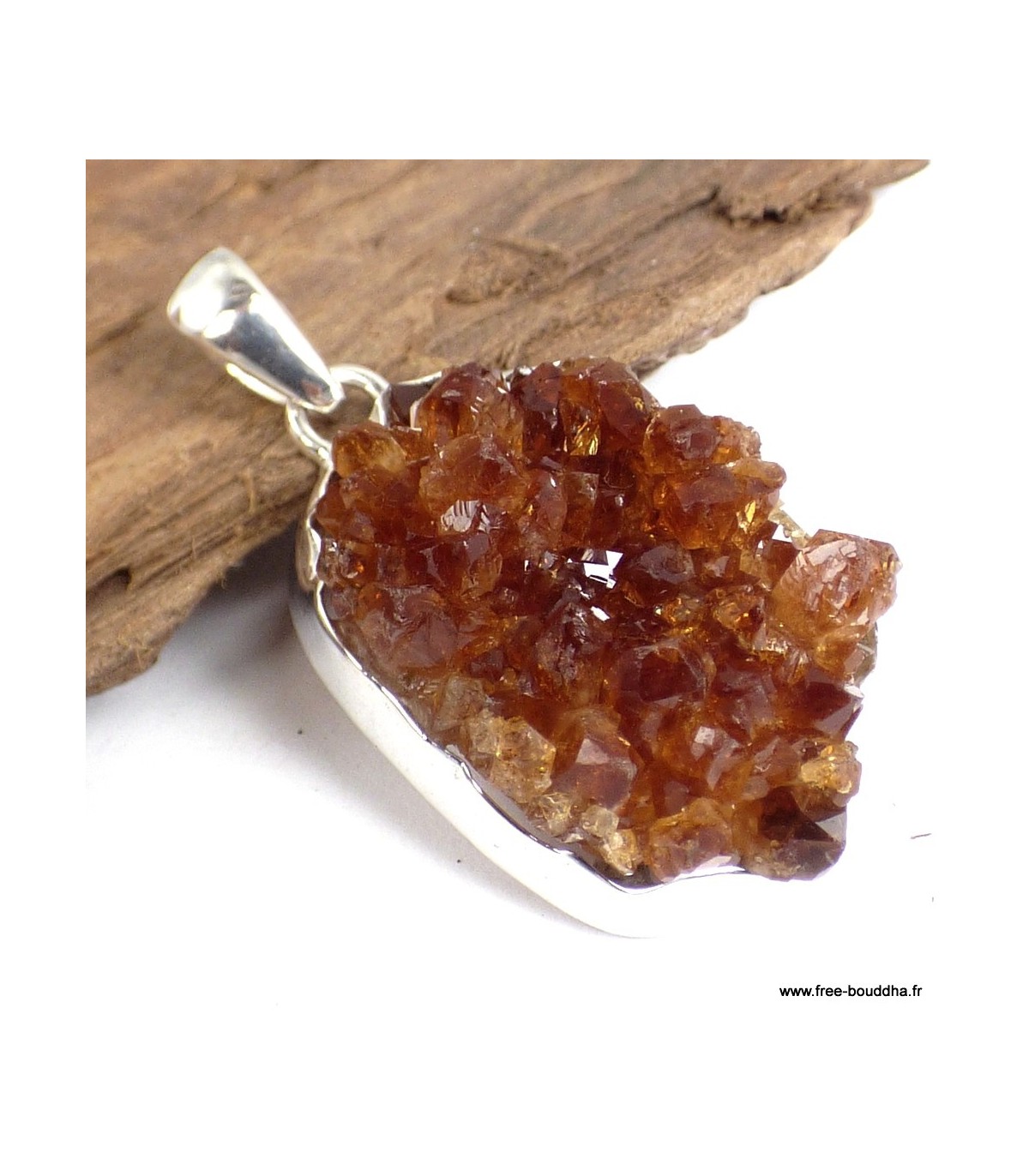 Bijou pendentif Citrine druze miel foncé serti clos et argent 95