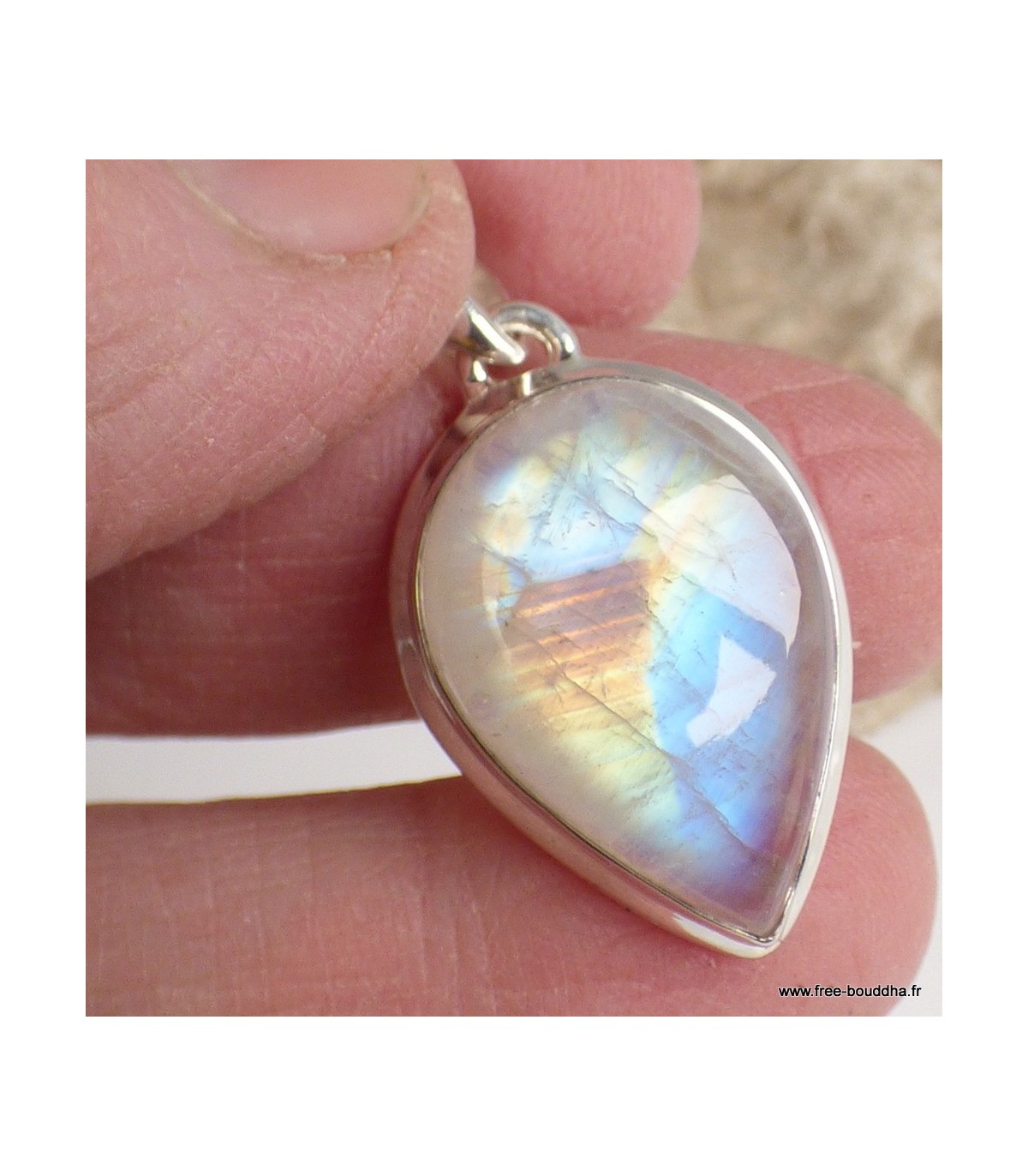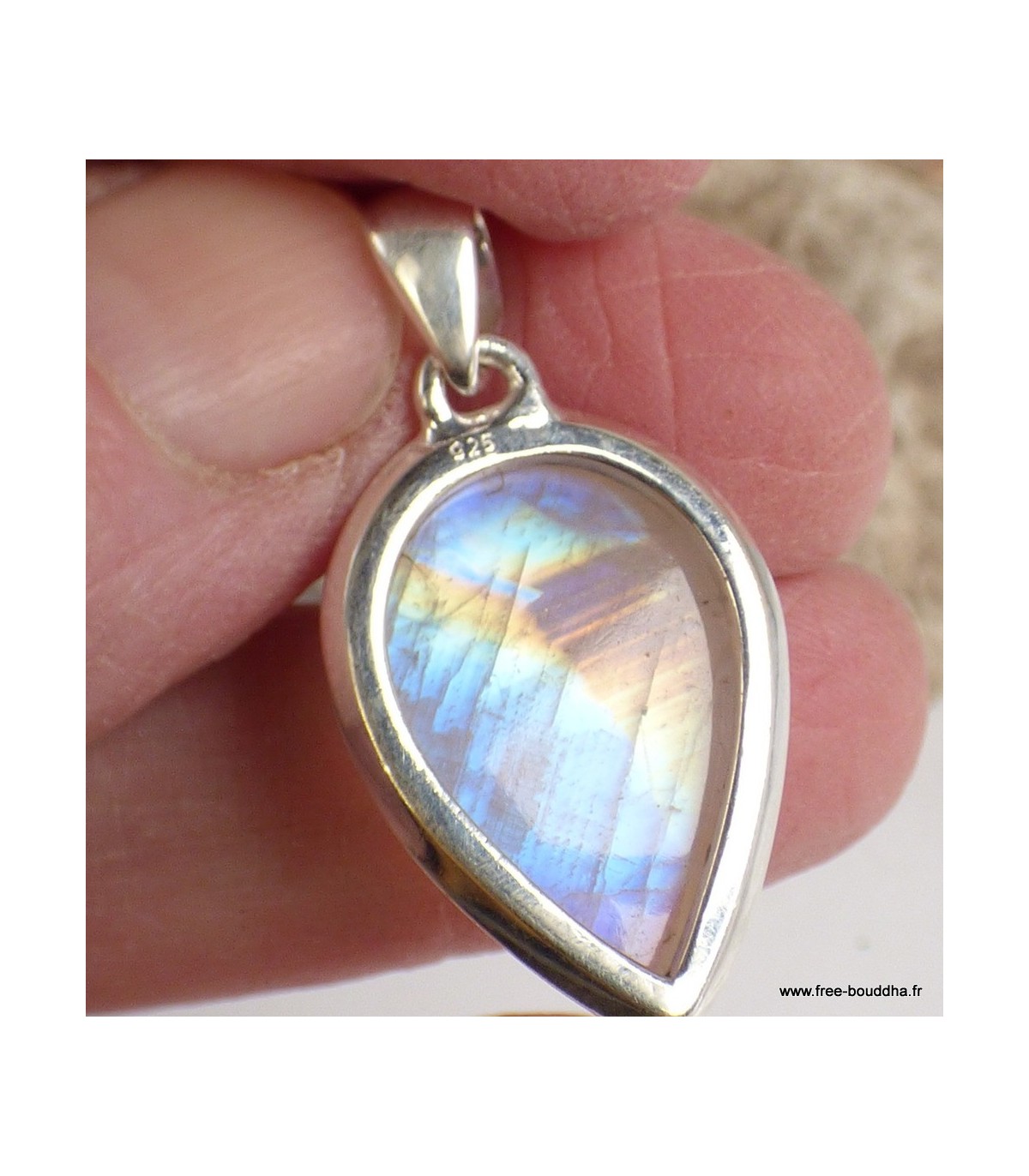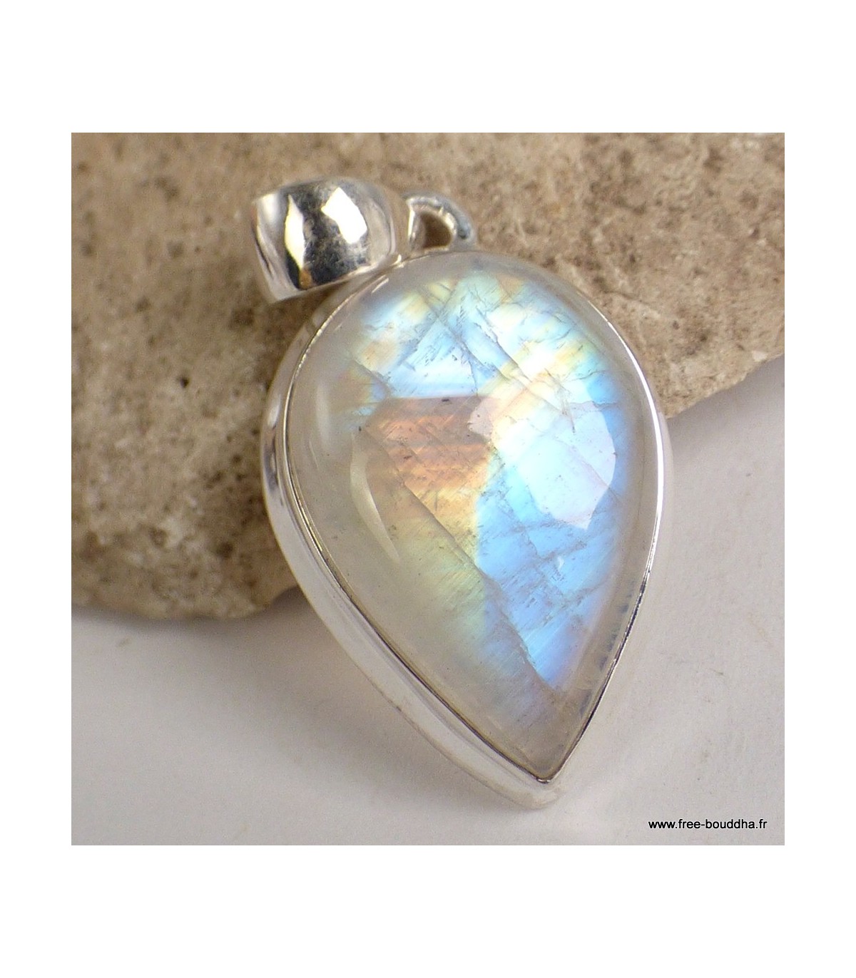 - Pierre : véritable Pierre de Lune bleue péristérite, qualité AAA