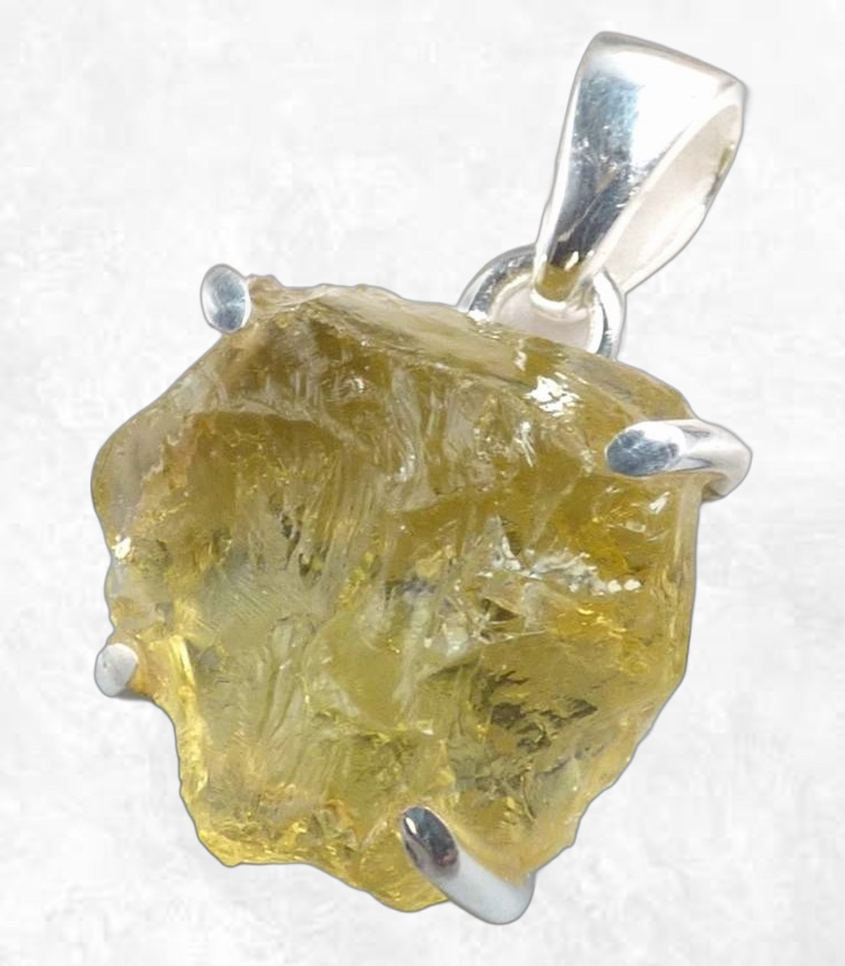 Bijou Pendentif Quartz Citron brut asymétrique en argent 925