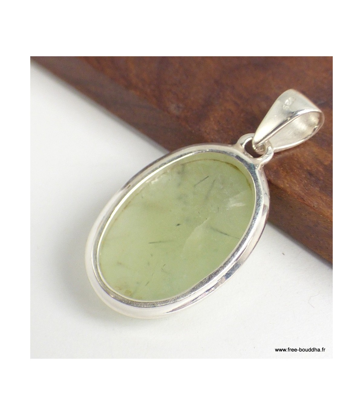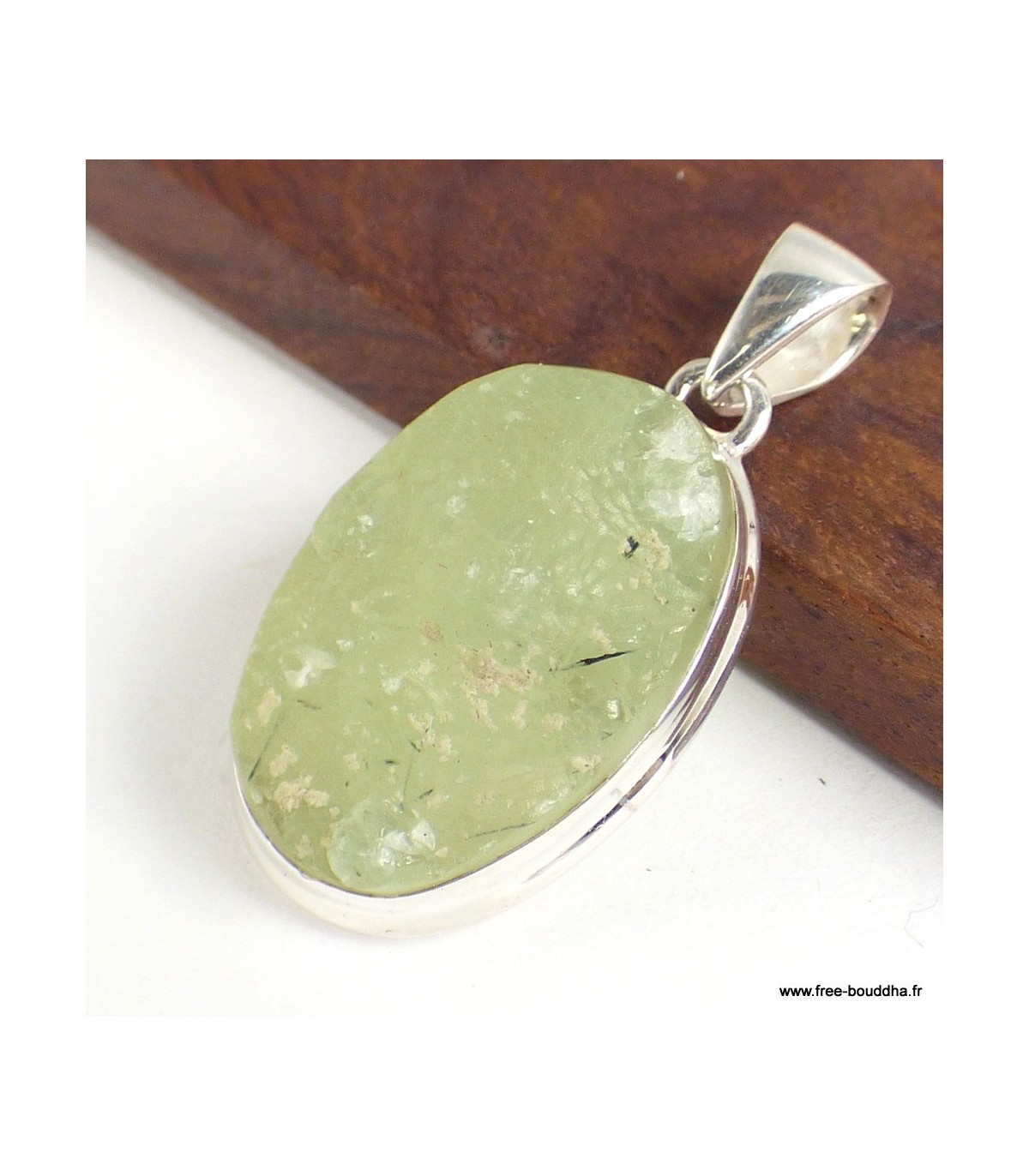 Pendentif ovale en Préhnite brute et Argent 925