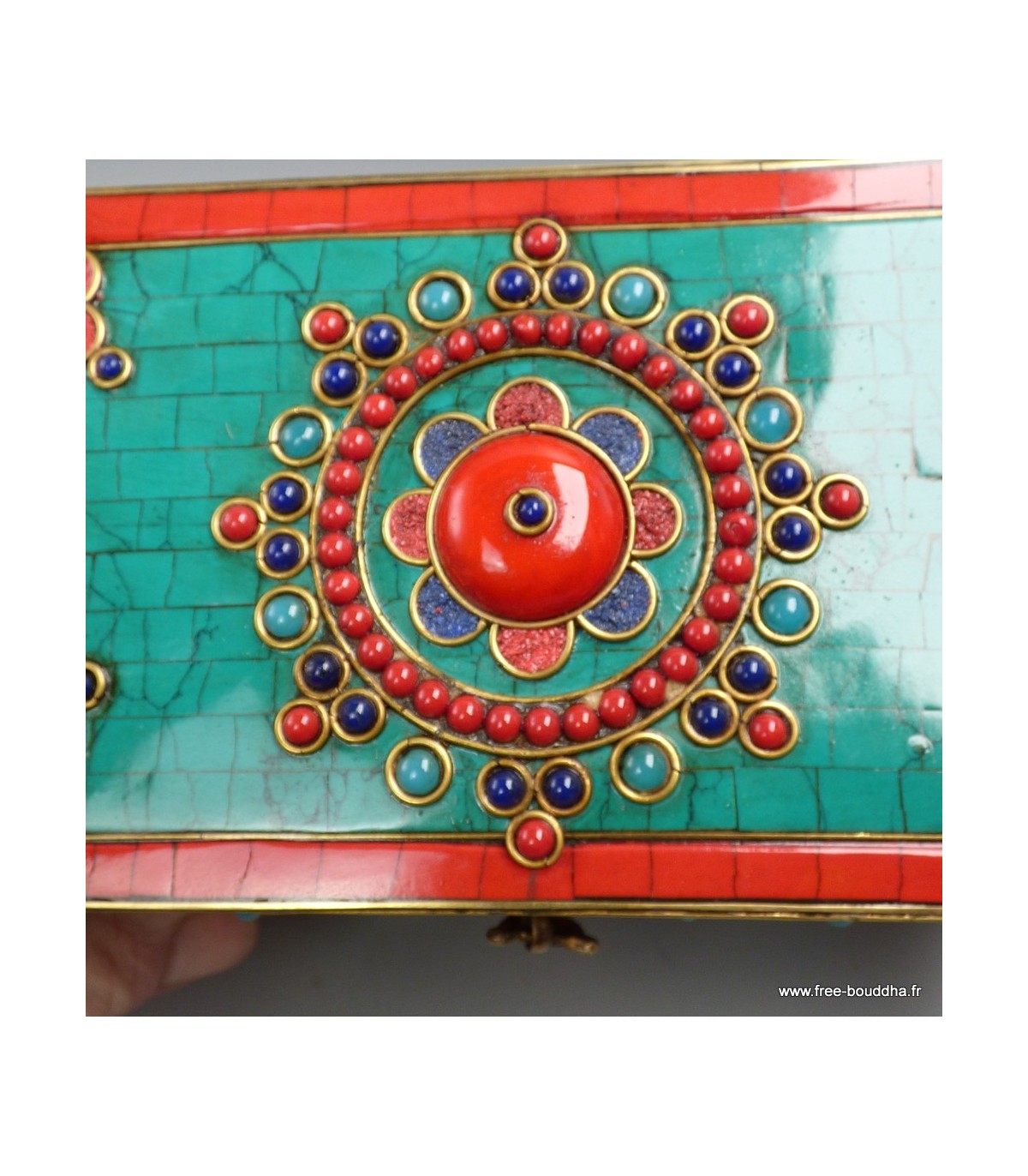 Boîte à bijoux tibétaine pierres naturelles Roue du Dharma