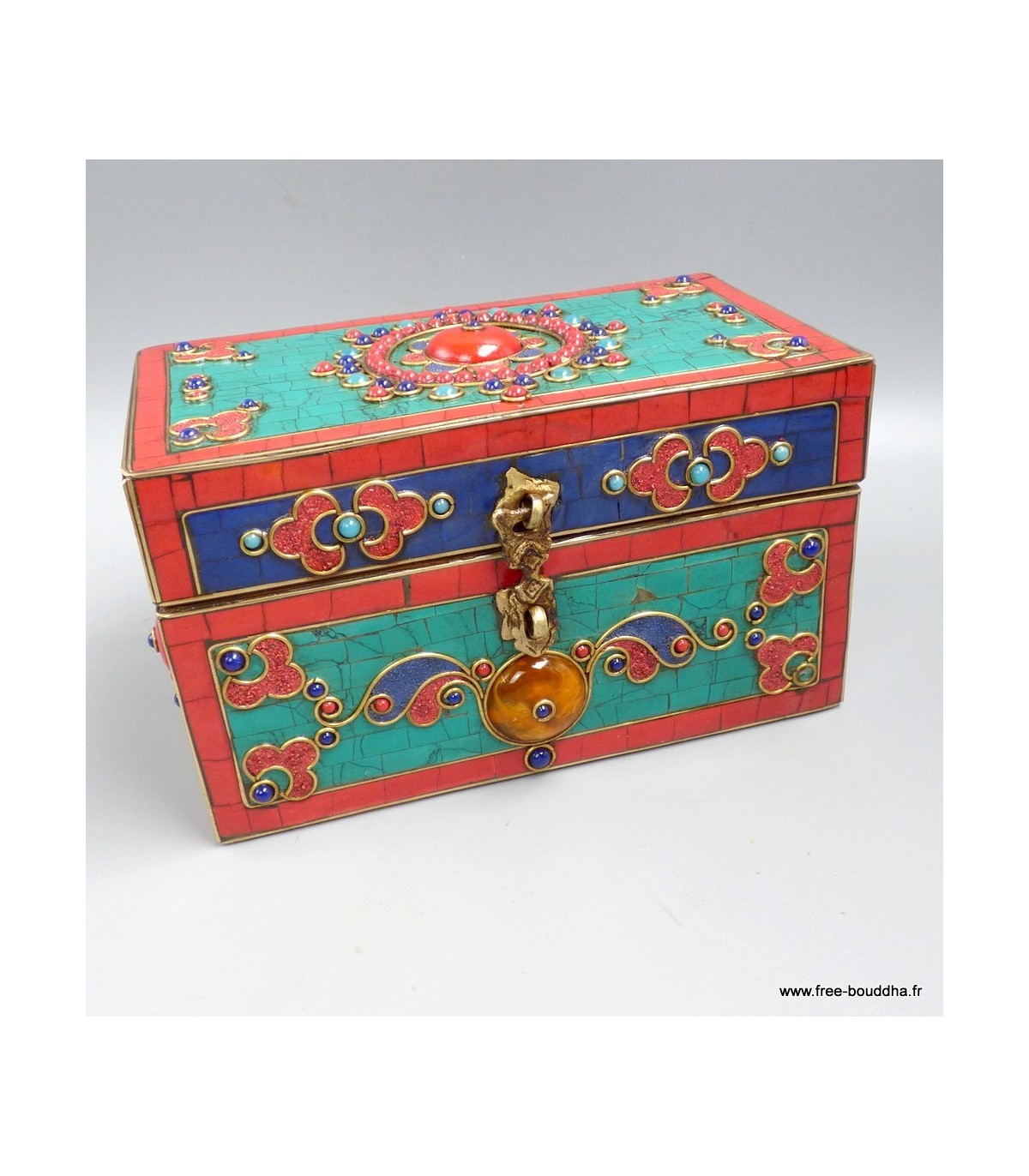 Découvrez l'artisanat traditionnel grâce à notre collection, notamment notre boîte orientale inspirée par la culture tibétaine, idéale pour sublimer vos bijoux avec élégance.