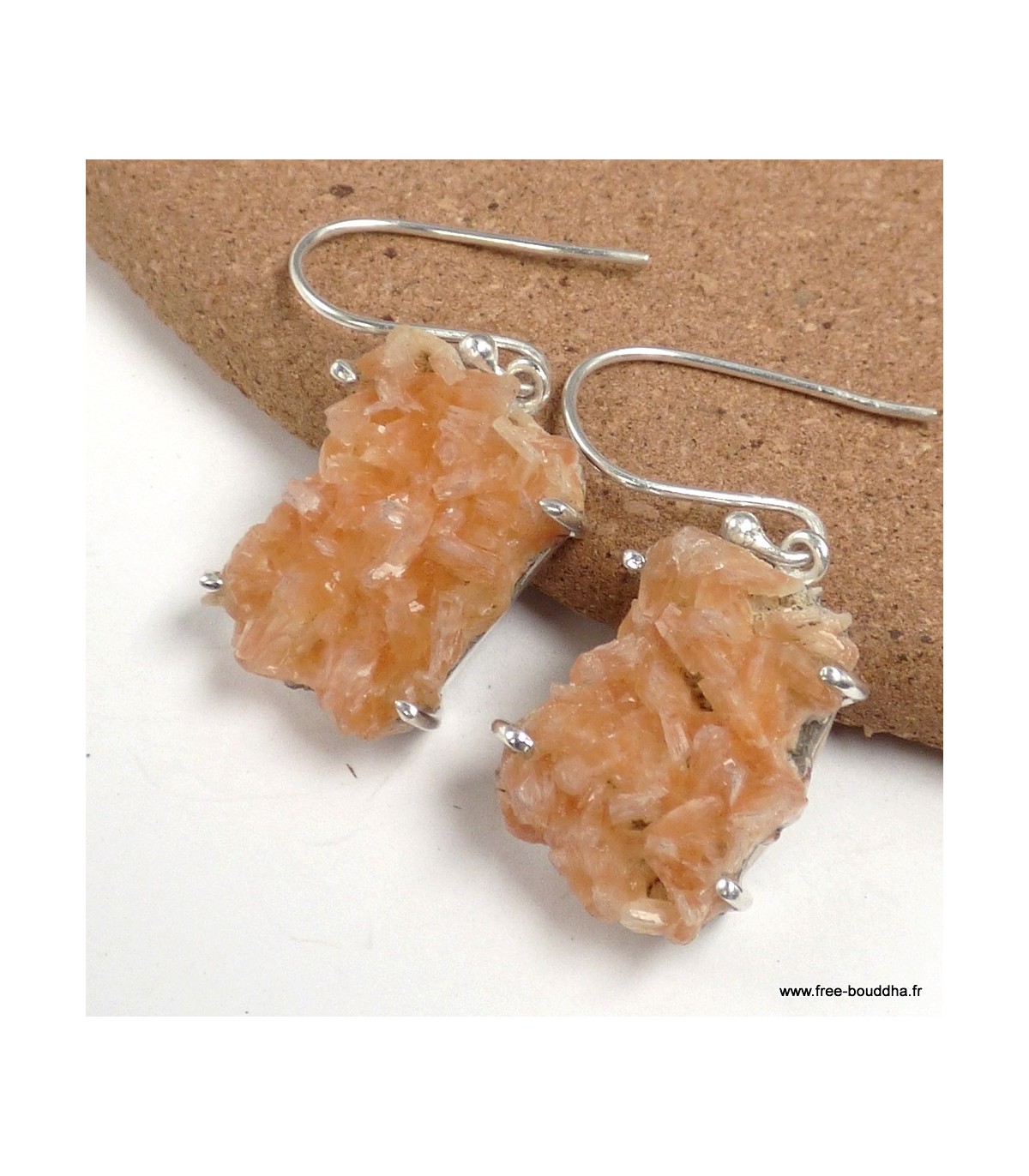 Boucles d’oreilles en Heulandite brute – Argent 925
