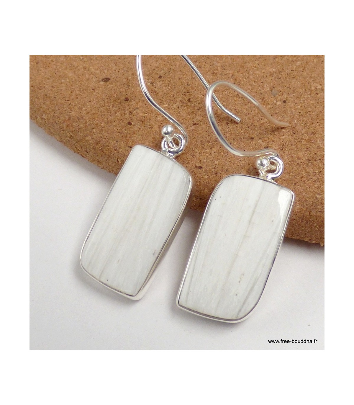 Boucles d’oreilles asymétriques en Scolecite blanche – Argent 925