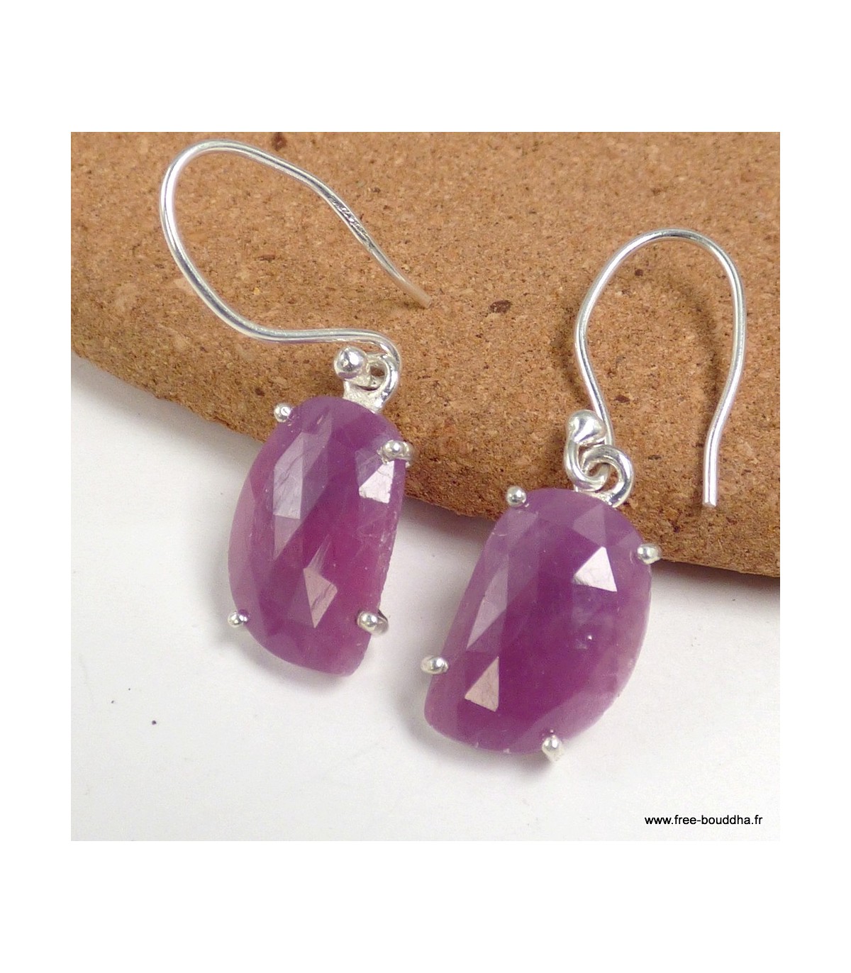 Boucles d'oreilles asymétriques Saphir rose facetté