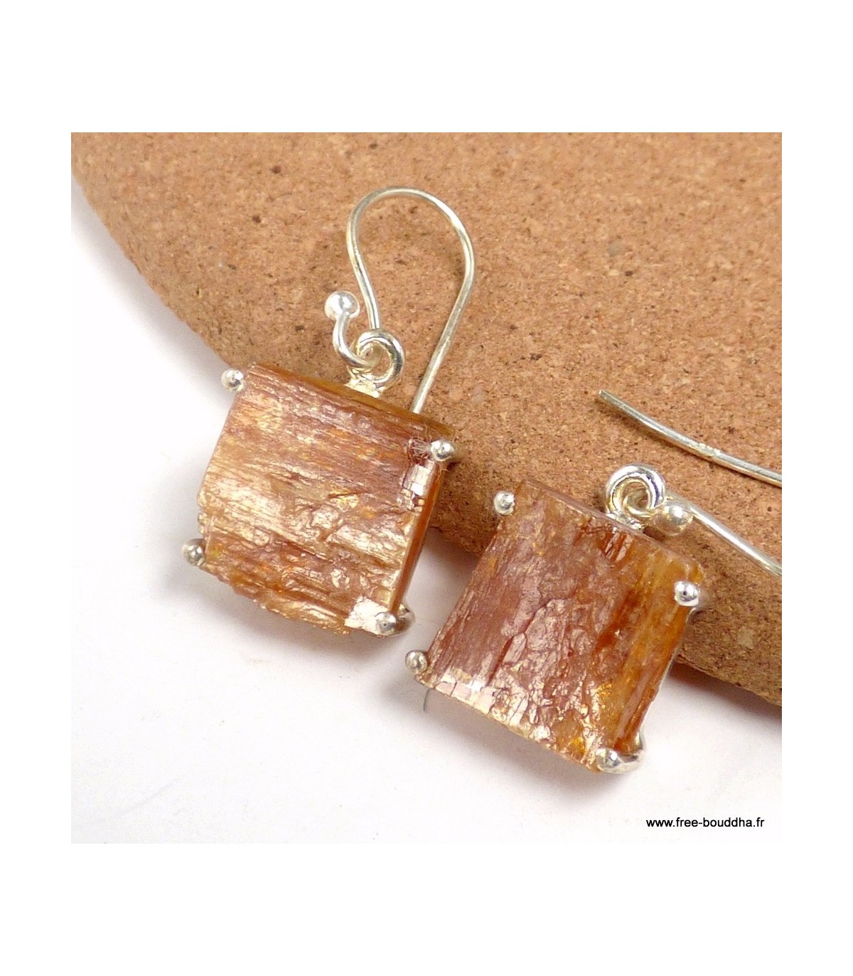 Boucles d'oreilles carrées Cyanite Orange brute