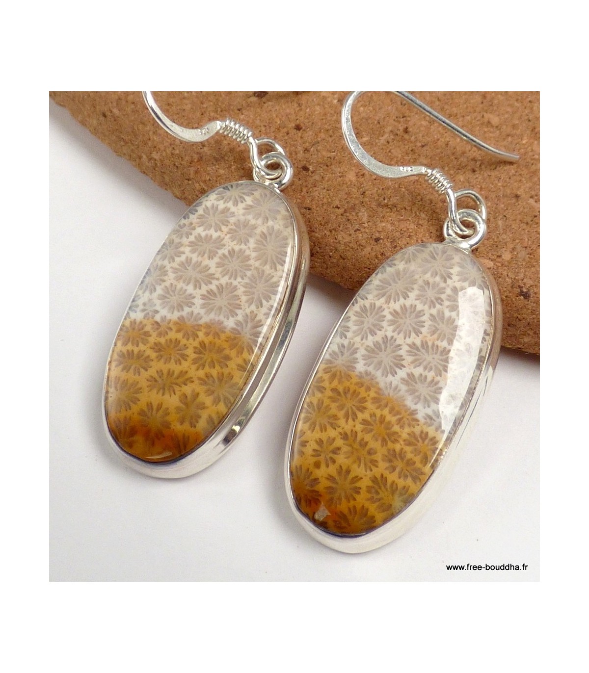 Ces boucles d’oreilles mettent en valeur un Corail fossile authentique, une matière naturelle provenant d’Indonésie, formée à partir d’anciens coraux marins. Ce corail est dit “mort”, car il provient de structures fossilisées et non de prélèvements vivants. Il se distingue par ses motifs floraux naturels, véritables signatures minérales de son origine organique.