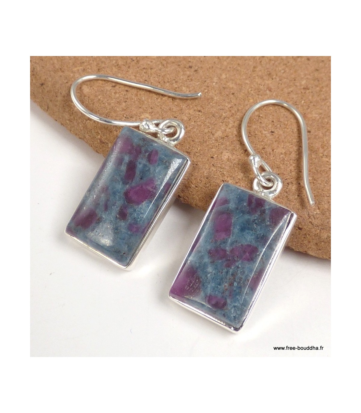 Boucles d’oreilles rectangulaires en Rubis sur Cyanite et argent 925