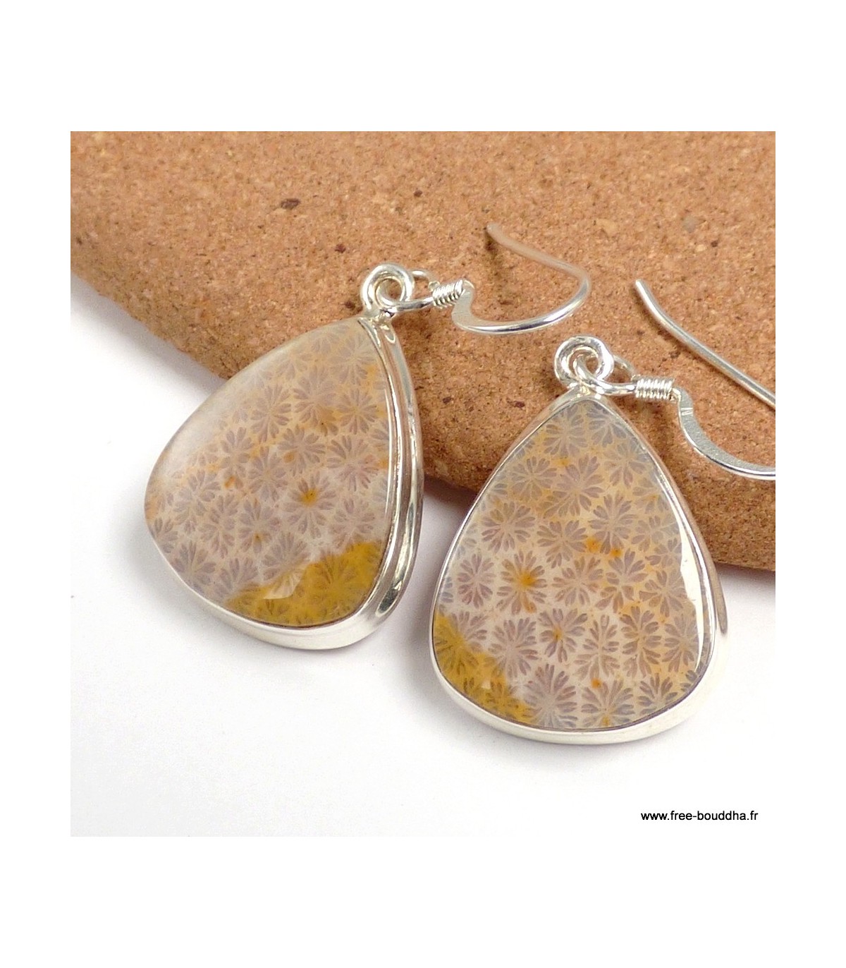 Boucles d’oreilles Corail fossile indonésien goutte – Argent 925