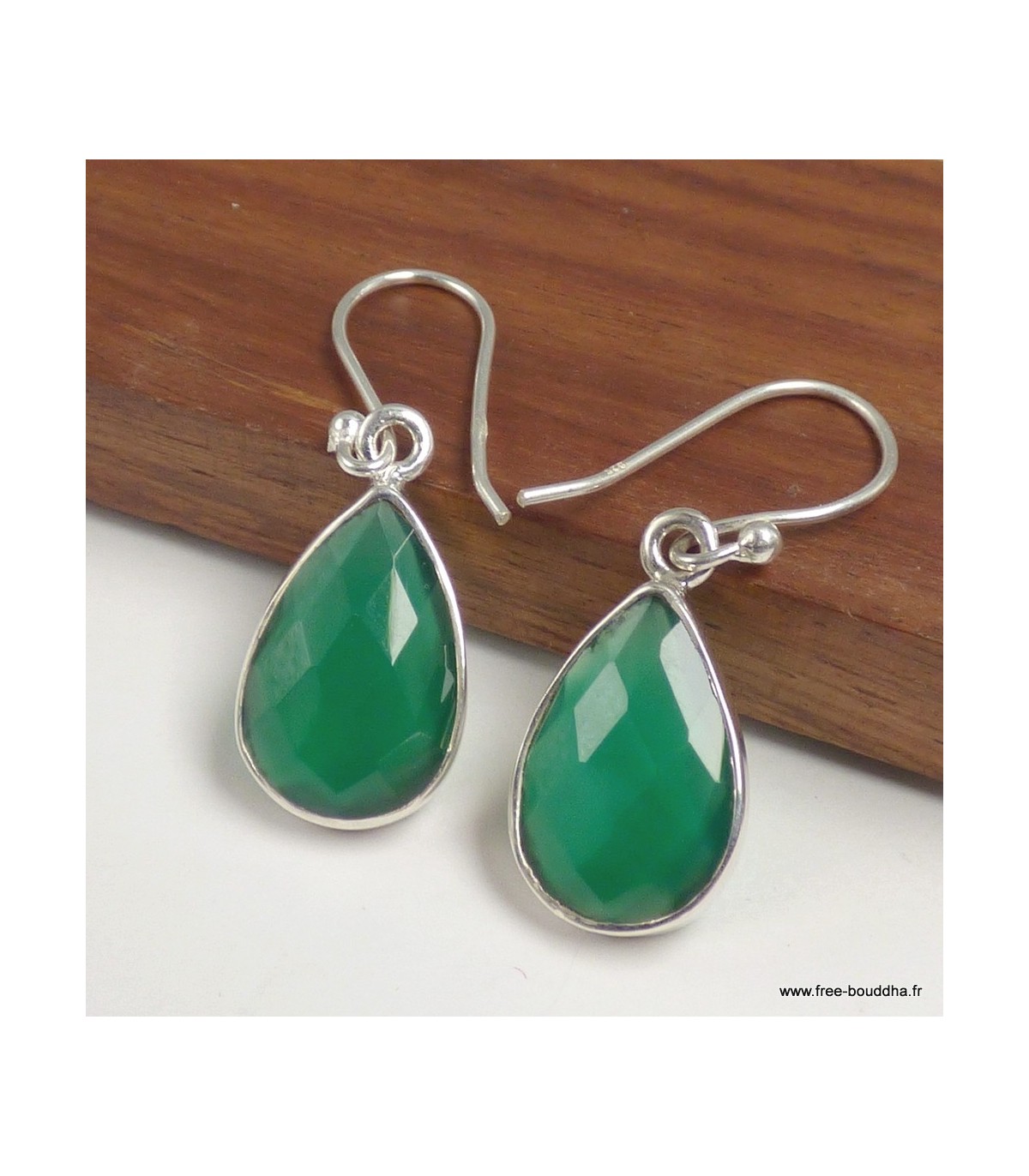 Boucles d’oreilles goutte en Onyx vert facetté et argent 925