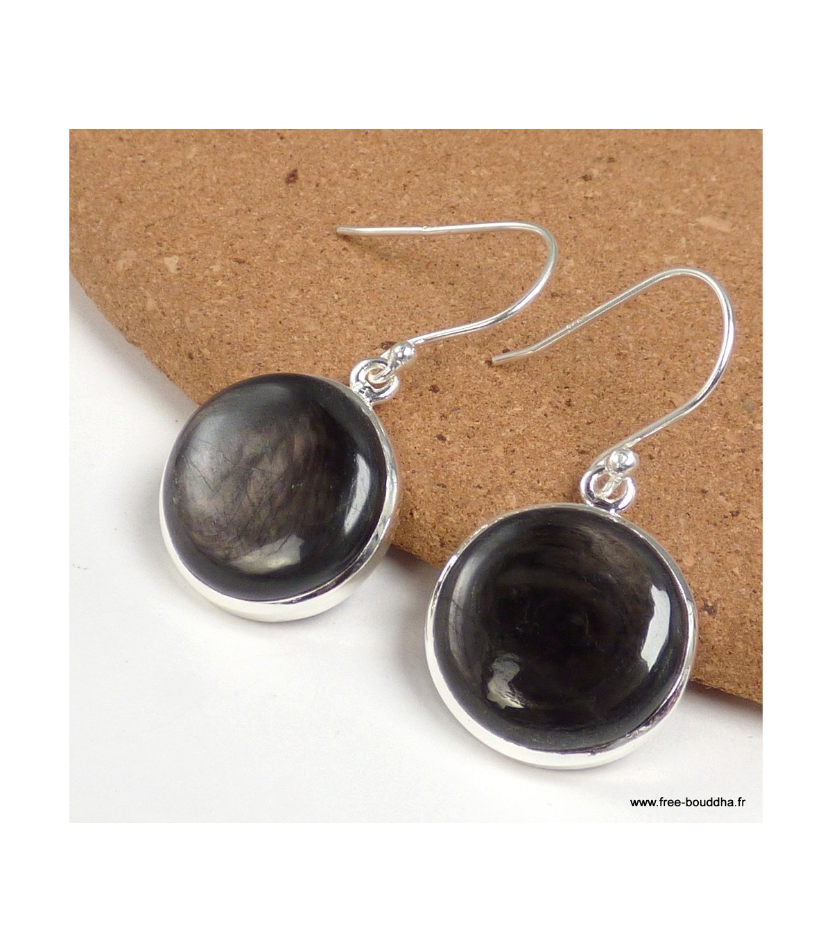 Boucles d’oreilles rondes en Hypersthène – Argent 925