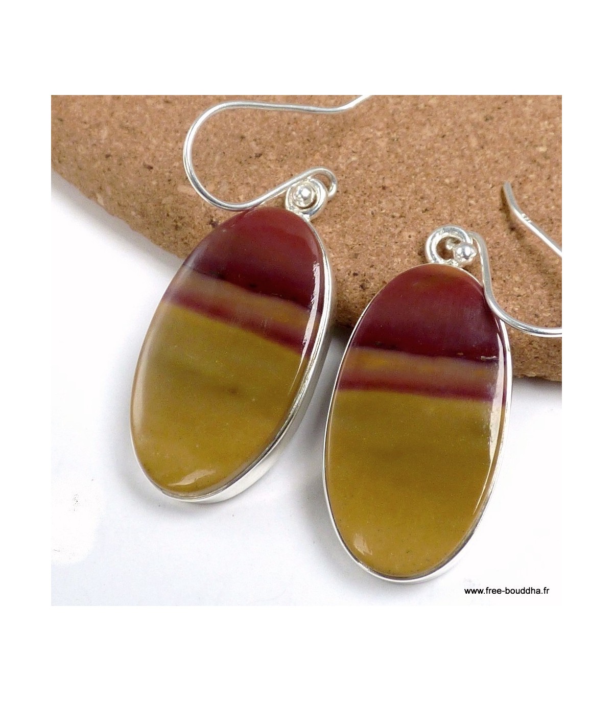 Ces boucles d’oreilles mettent en valeur un Jaspe Mokaïte authentique, pierre australienne réputée pour ses couleurs chaudes et naturelles : ocres, rouges, bruns et jaunes. La forme ovale révèle la douceur des lignes et la richesse des motifs minéraux propres à cette pierre expressive. La monture en argent 925 poinçonné assure une finition durable, lumineuse et élégante.