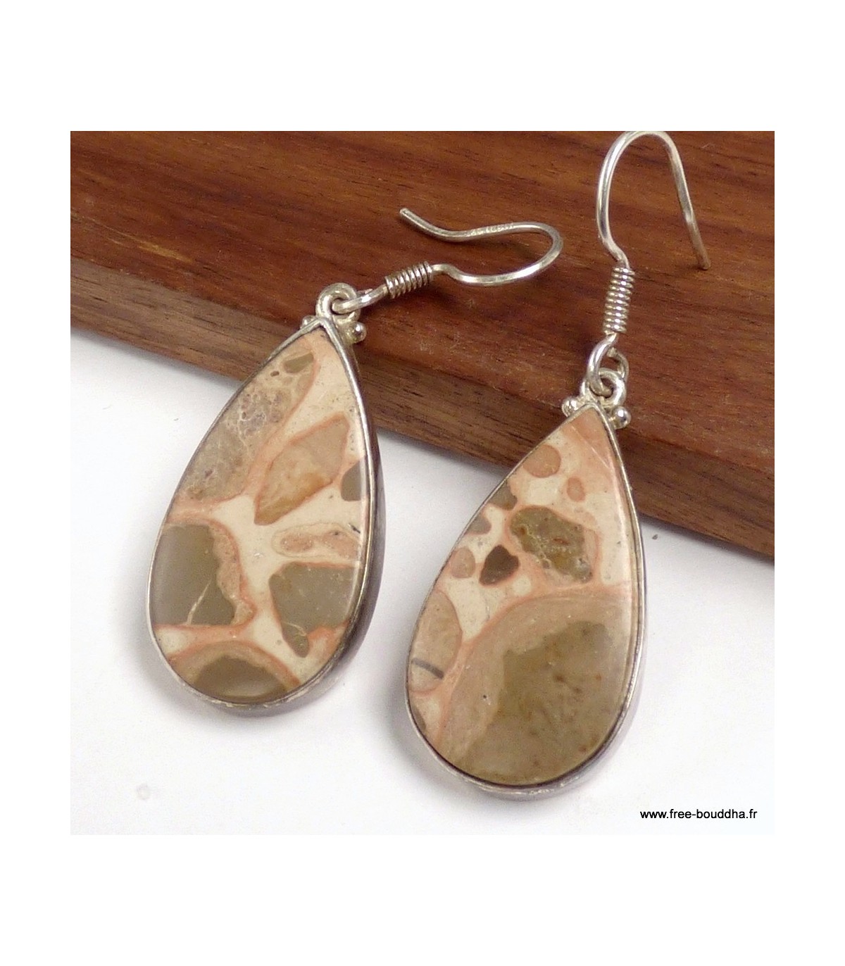 Boucles d'oreilles Jaspe Oeil d'oiseau mexicain forme goutte