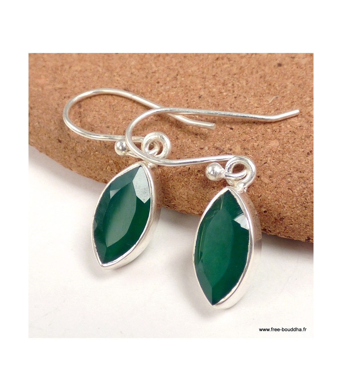Boucles d’oreilles marquise en Onyx vert facetté – Argent 925