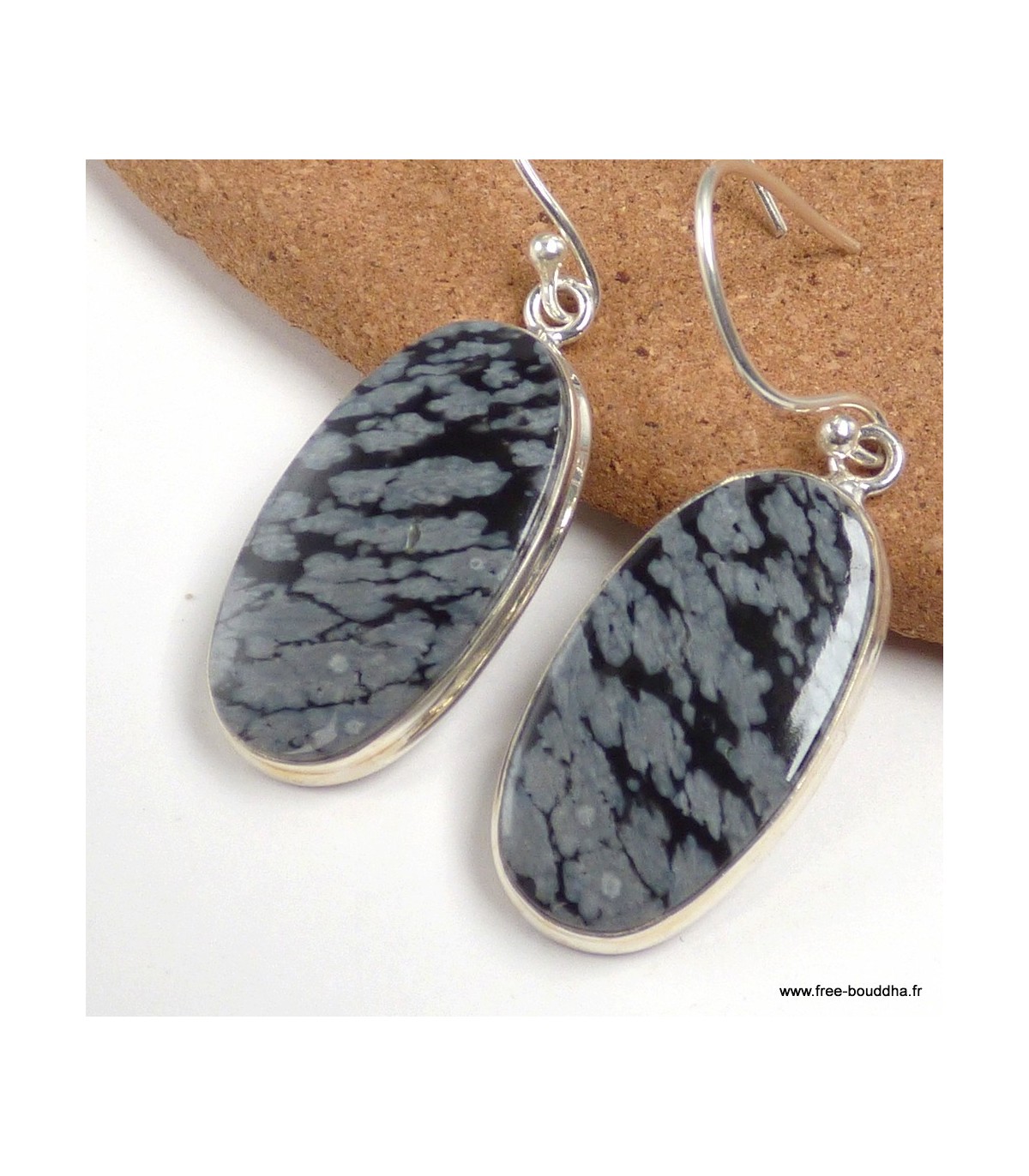 Boucles d'oreilles Obsidienne floconneuse ovales
