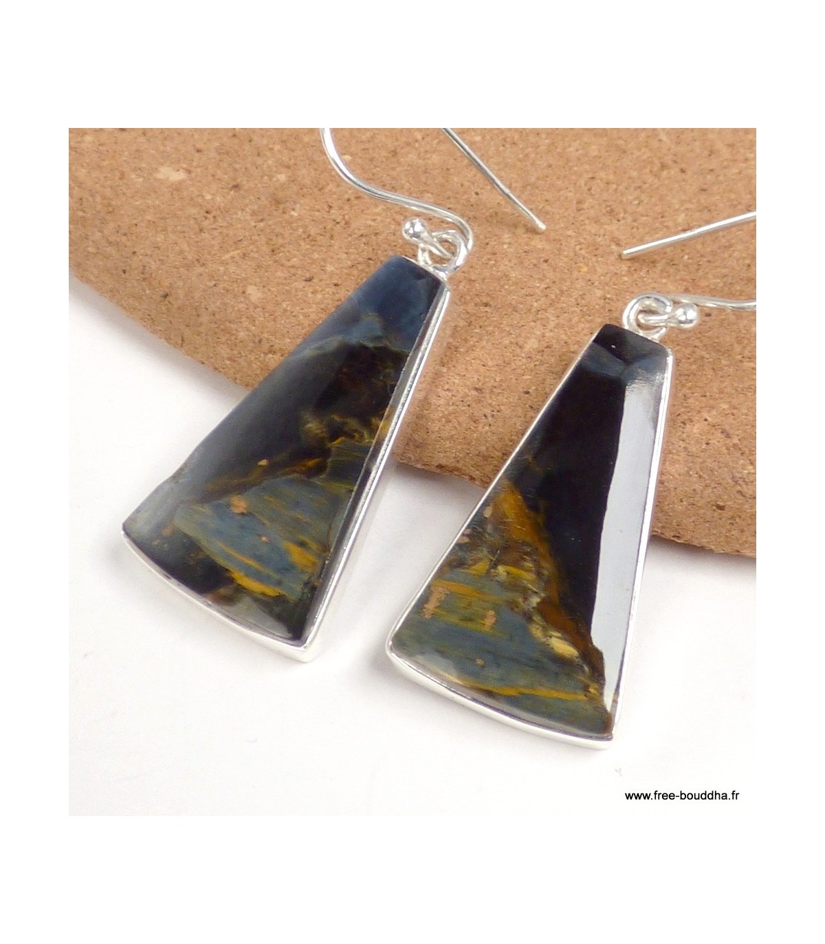 Boucles d'oreilles Pietersite bleue triangulaires