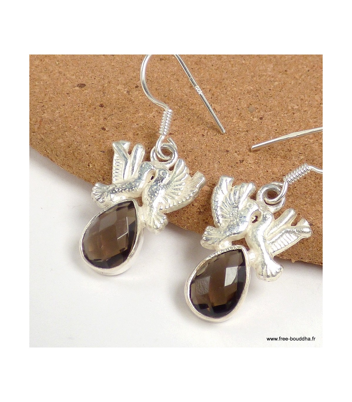 Boucles d'oreilles Quartz fumé facetté Tourterelles