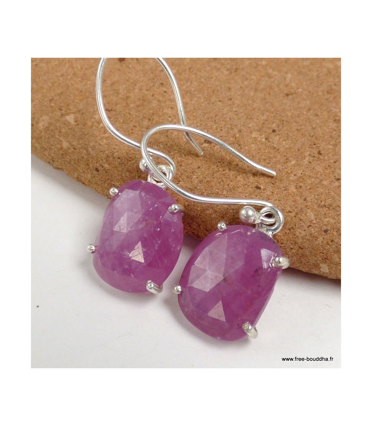 Boucles d’oreilles rectangulaires en Saphir rose non traité – Argent 925