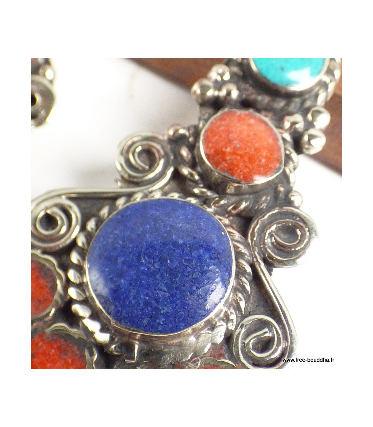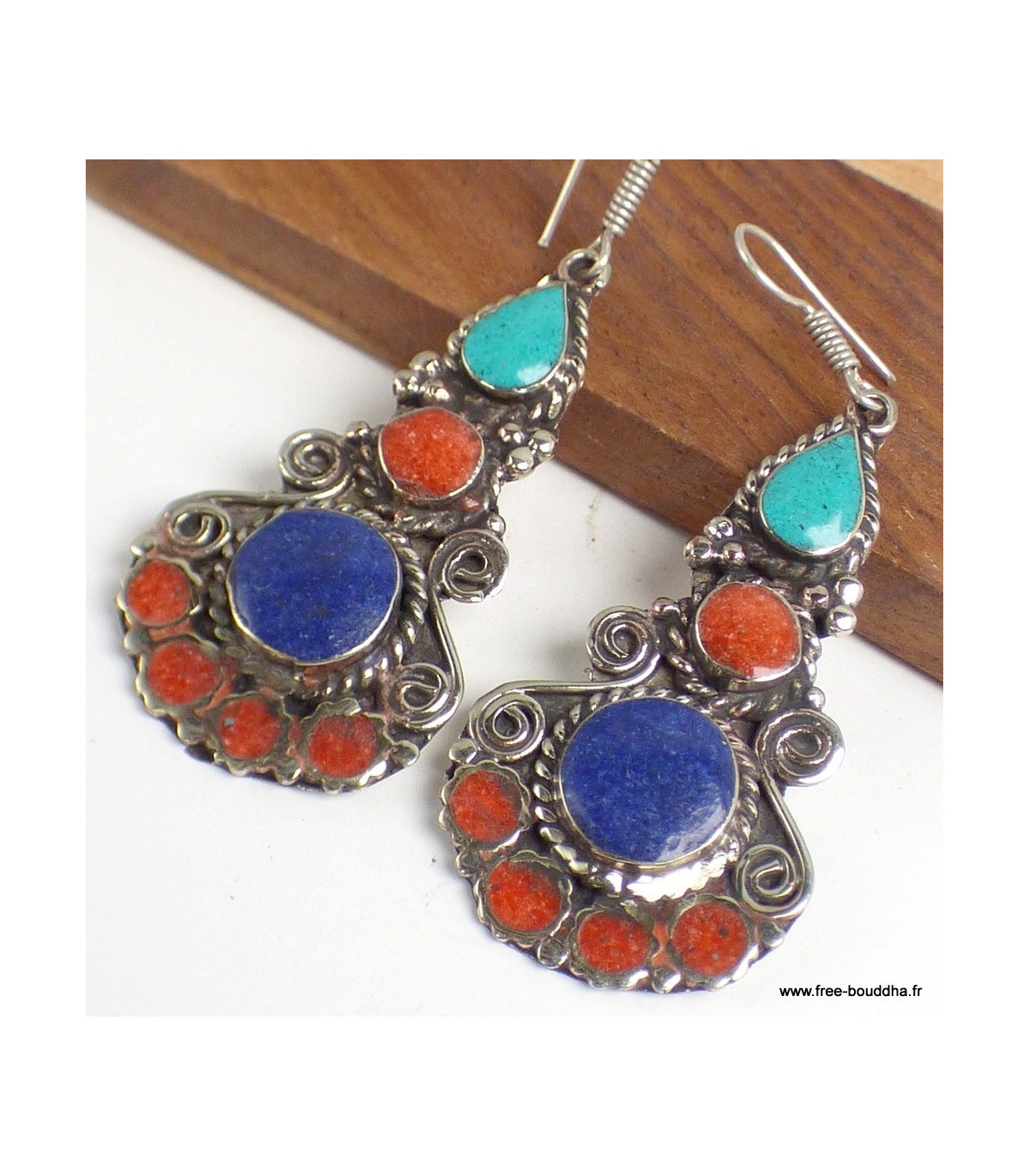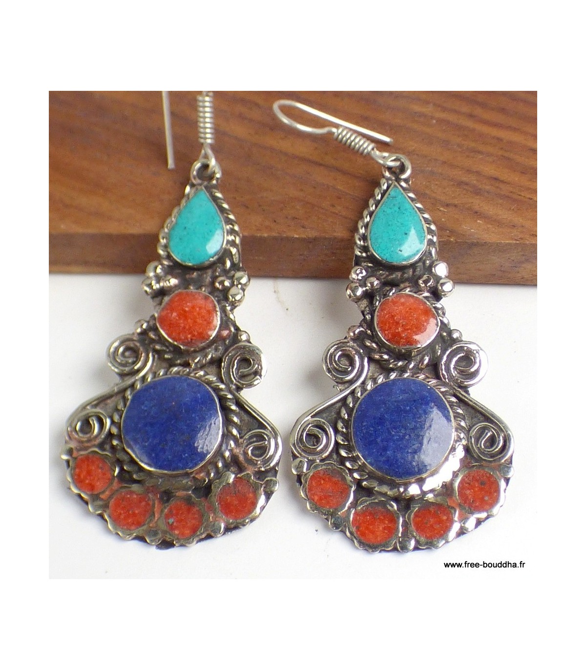 Boucles d’oreilles tibétaines ethniques du Népal – Forme fleur