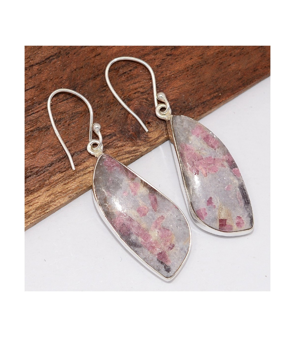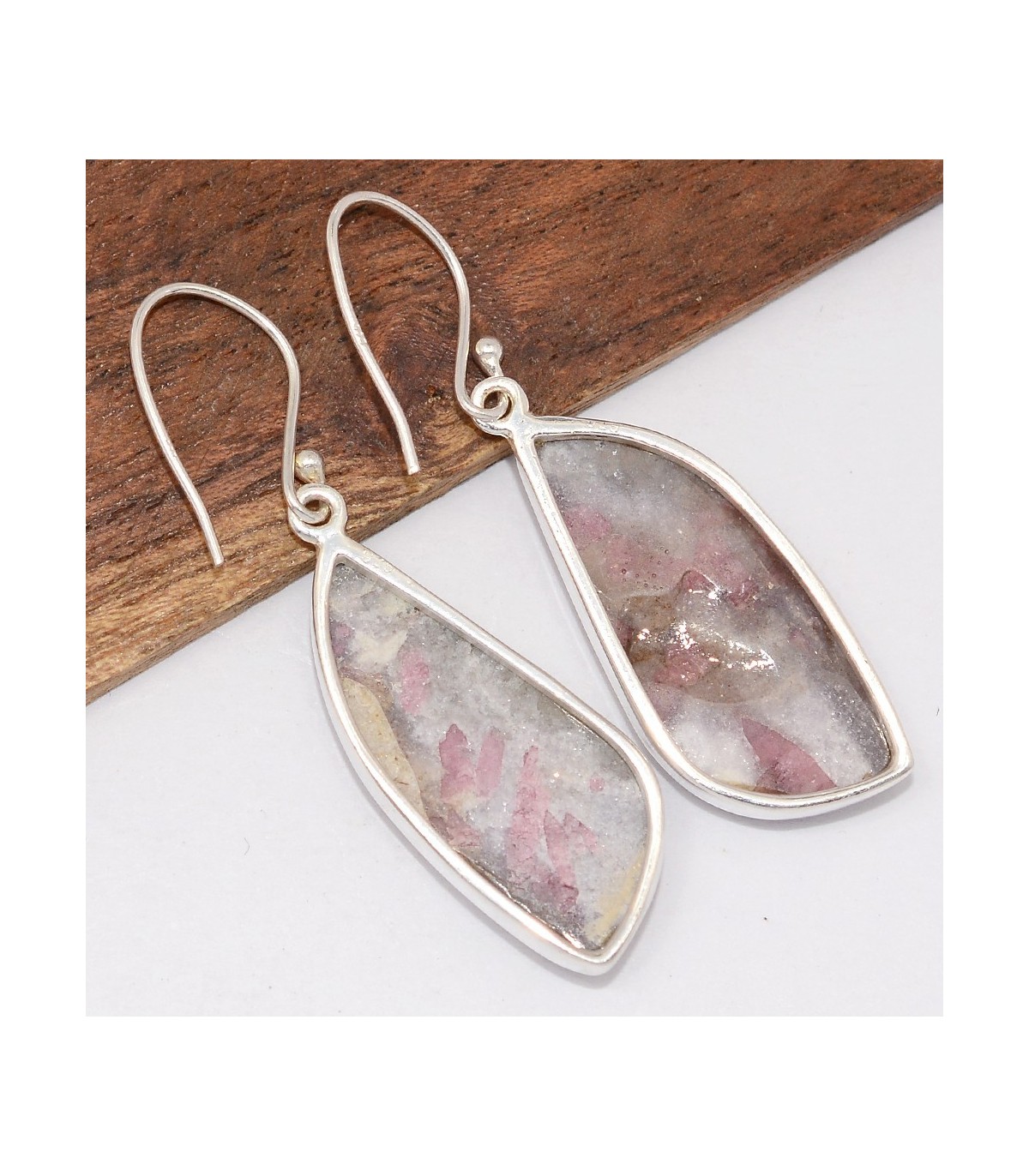 Boucles d'oreilles pierre naturelle en Tourmaline rose sur Lepidolite – Argent 925
