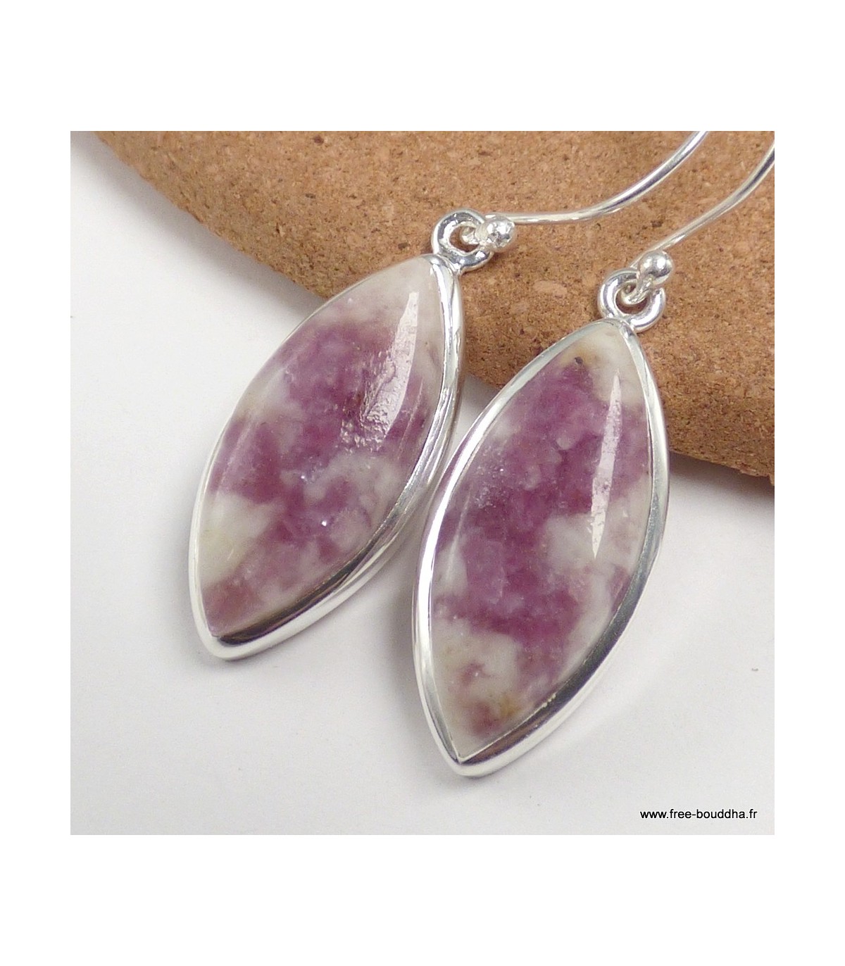 Boucles d'oreilles Tourmaline rose sur quartz marquise