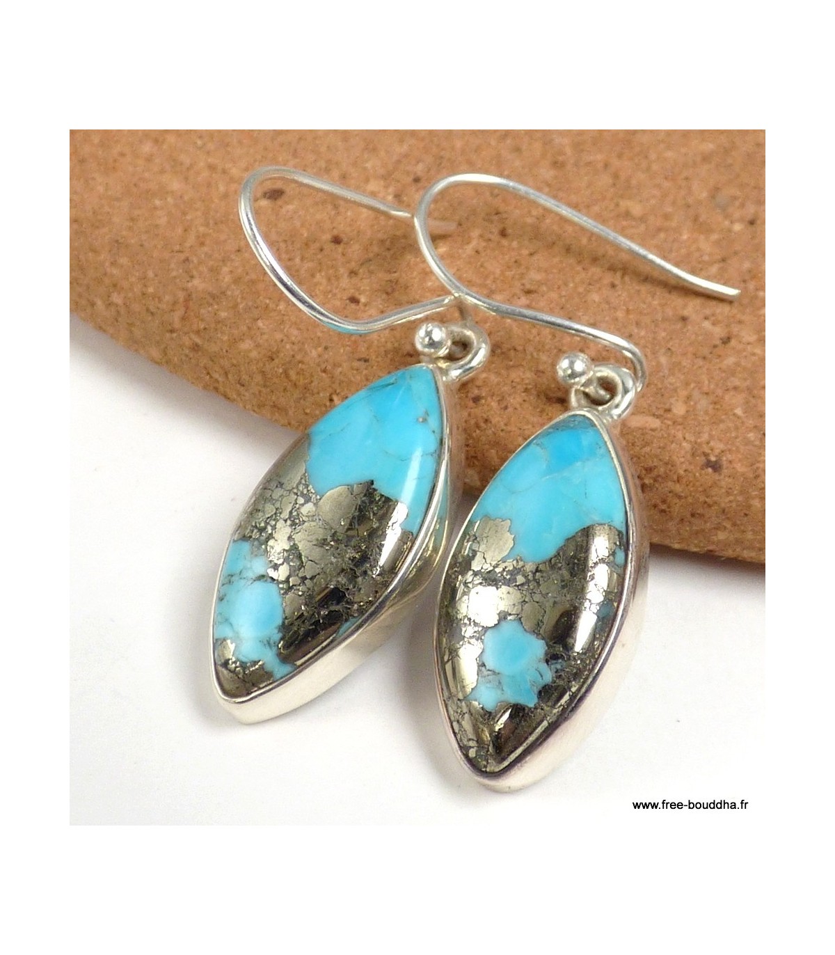 Boucles d’oreilles marquise en Turquoise sur Pyrite – Argent 925