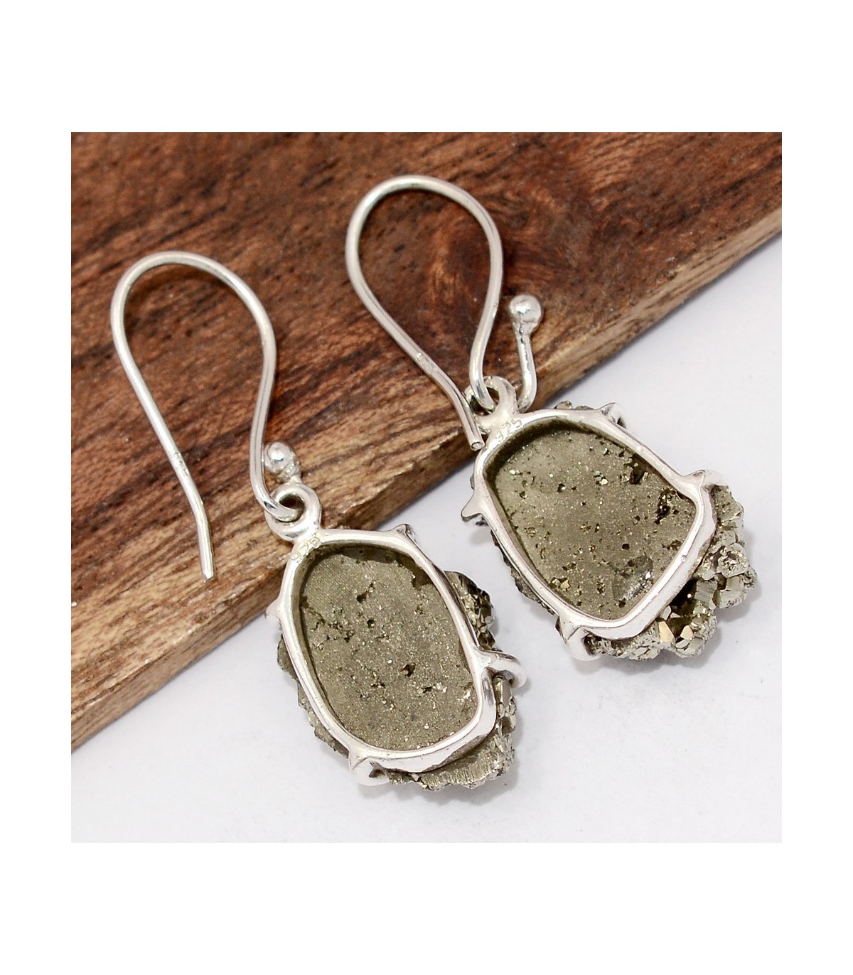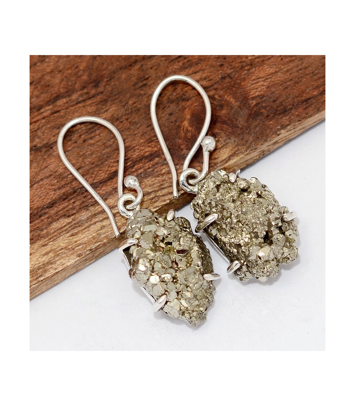 Boucles en Pyrite dorée véritable – Argent 925 – Pierre naturelle du Mexique