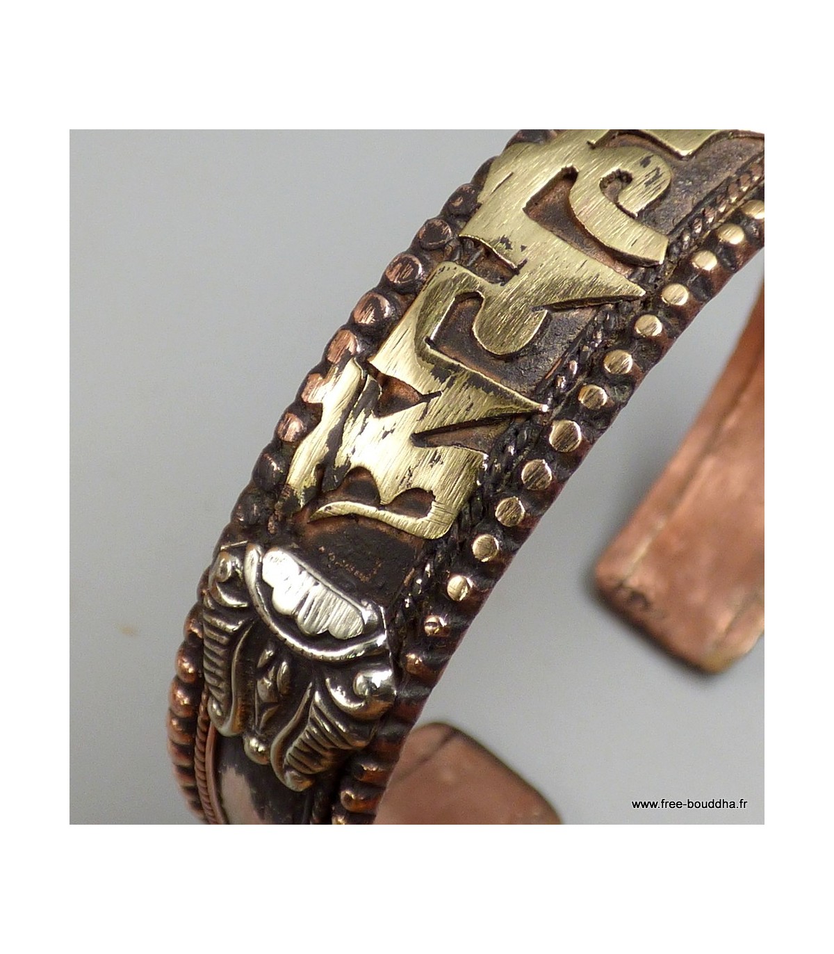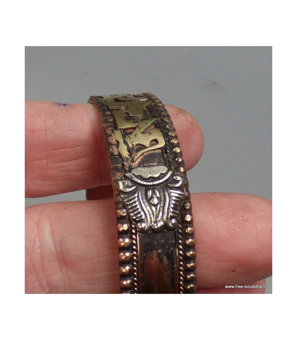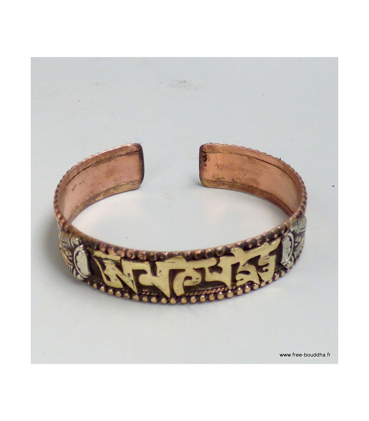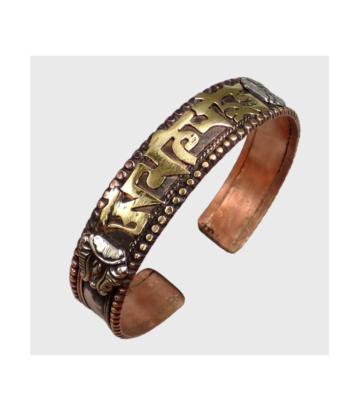 Ce bracelet bouddhiste est décoré du mantra de Chenrezi en laiton, symbole de compassion et de bienveillance. De chaque côté, un dorjé finement travaillé apporte protection et stabilité, renforçant la dimension spirituelle de ce bijou. Sa forme ouverte permet un ajustement naturel au poignet.