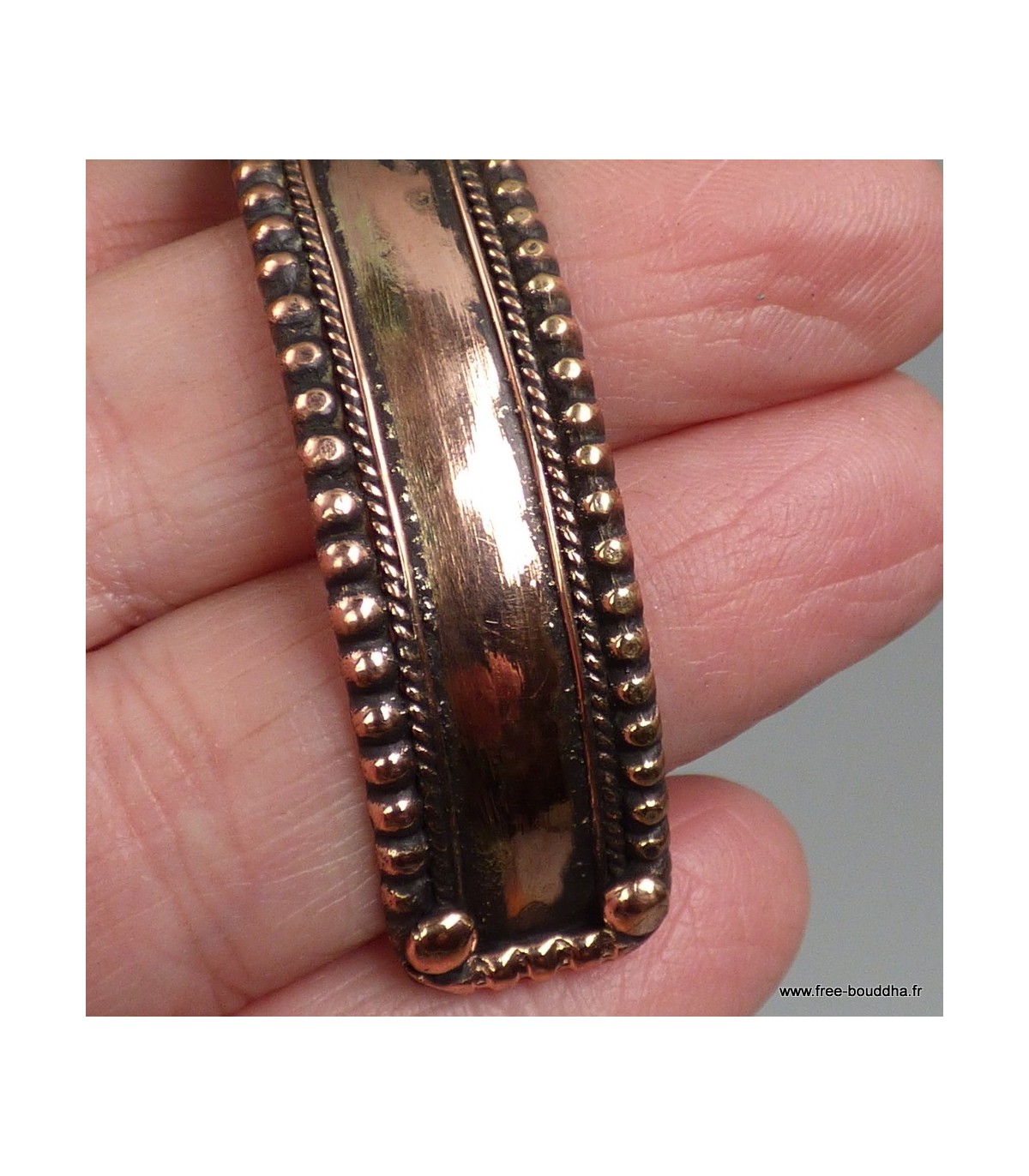 - Décor : mantra de Chenrezi en laiton, dorjé latéraux