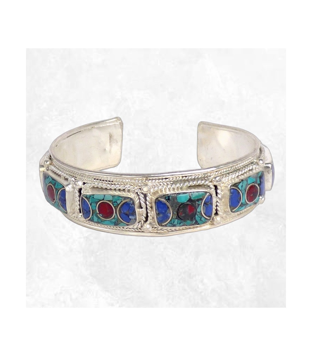 Bracelet tibétain jonc metal et pierres - Fait main - Népal