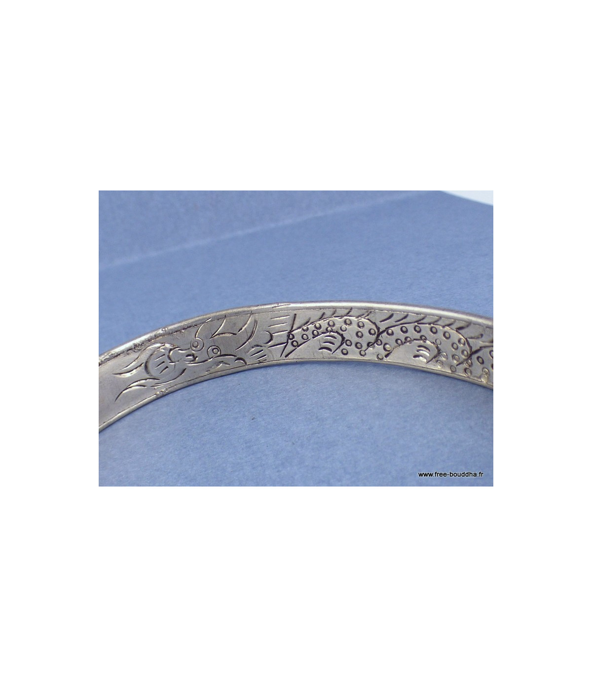 Bracelet Tibétain Filigrane – Mantra de Chenrezi en Métal Blanc