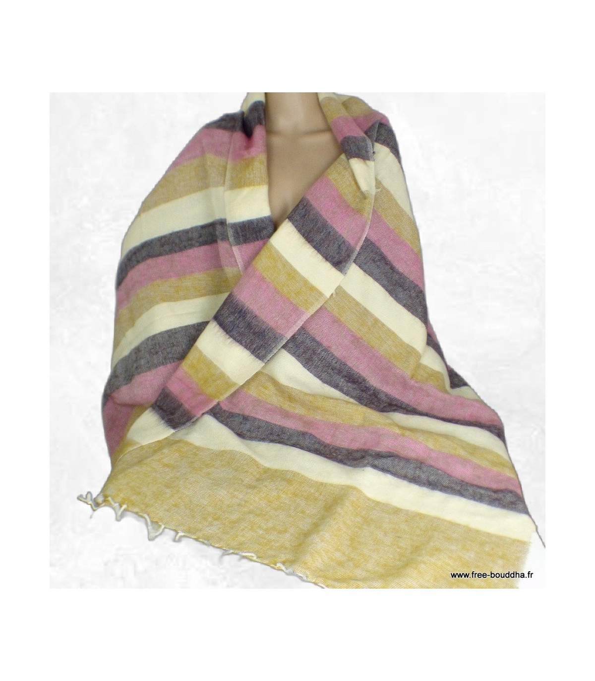 Châle artisanal laine de yack 180 x 82 cm moutarde rose
