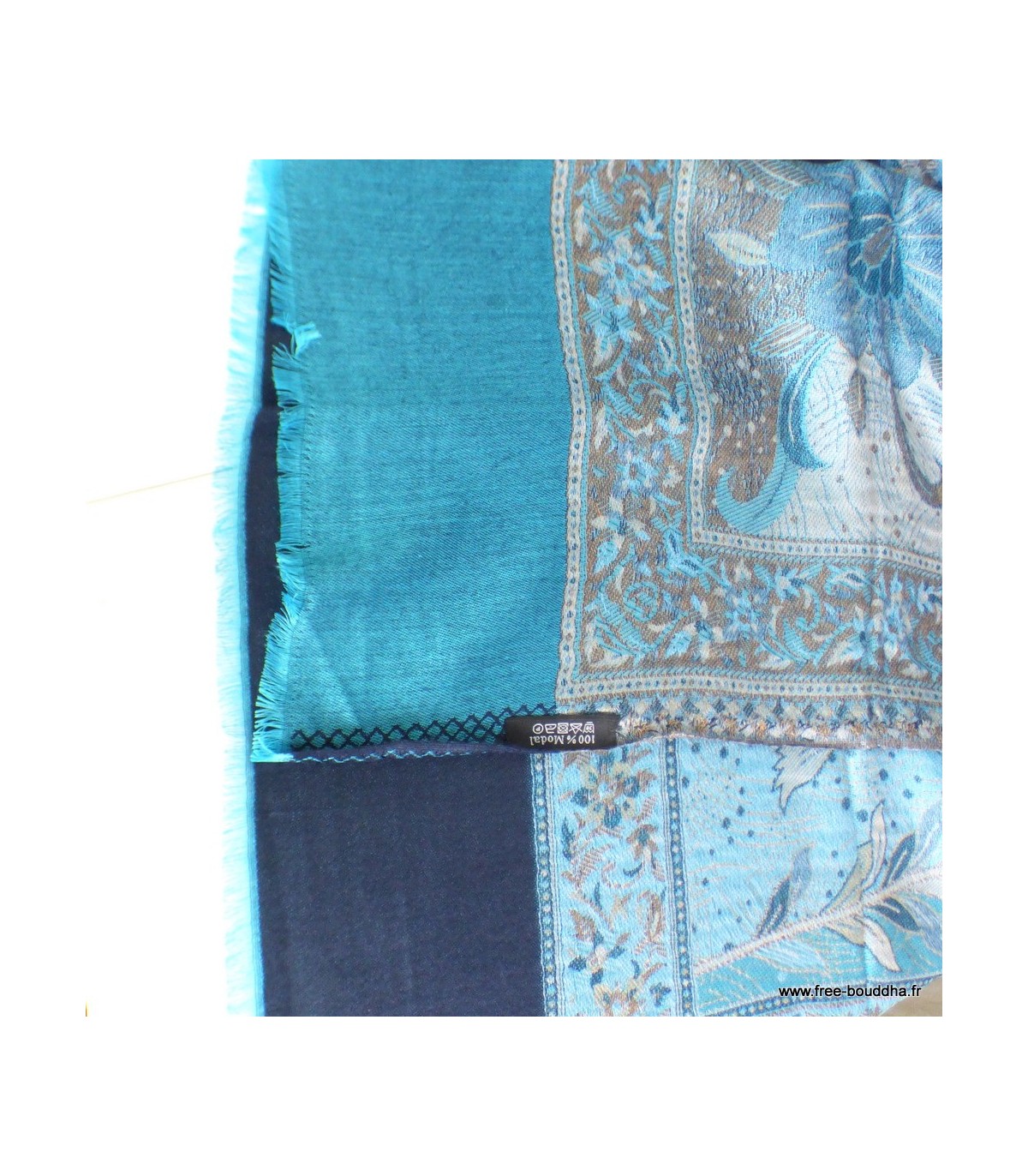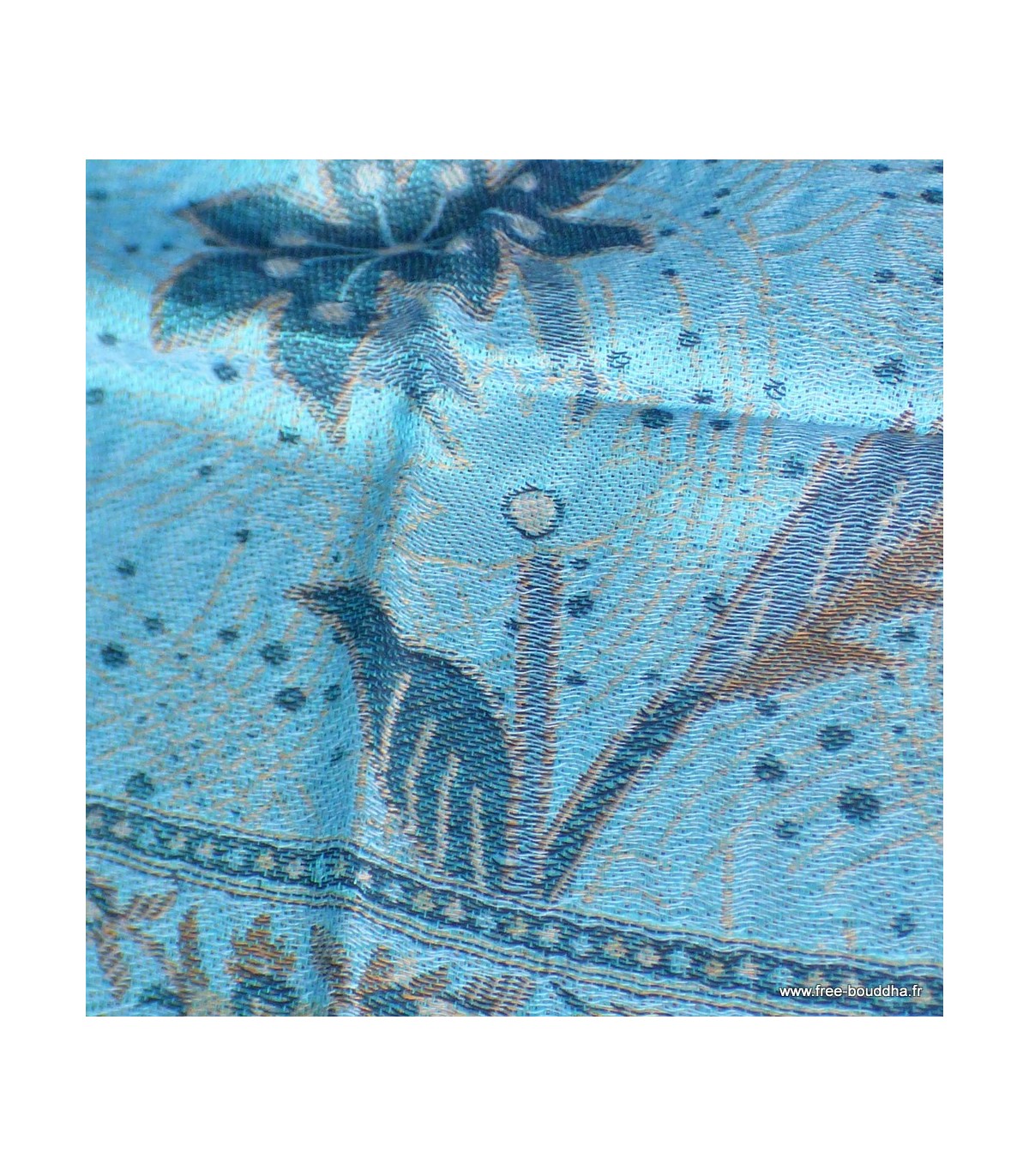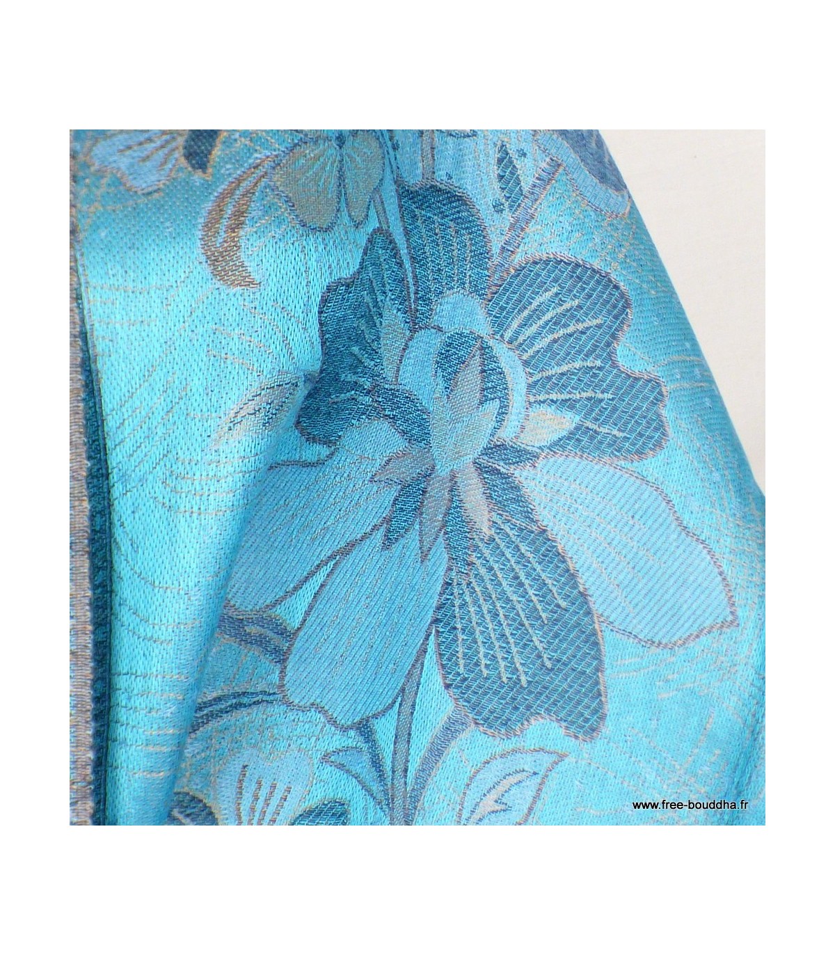 Châle bambou écologique bleu motif floral – 190 x 70 cm