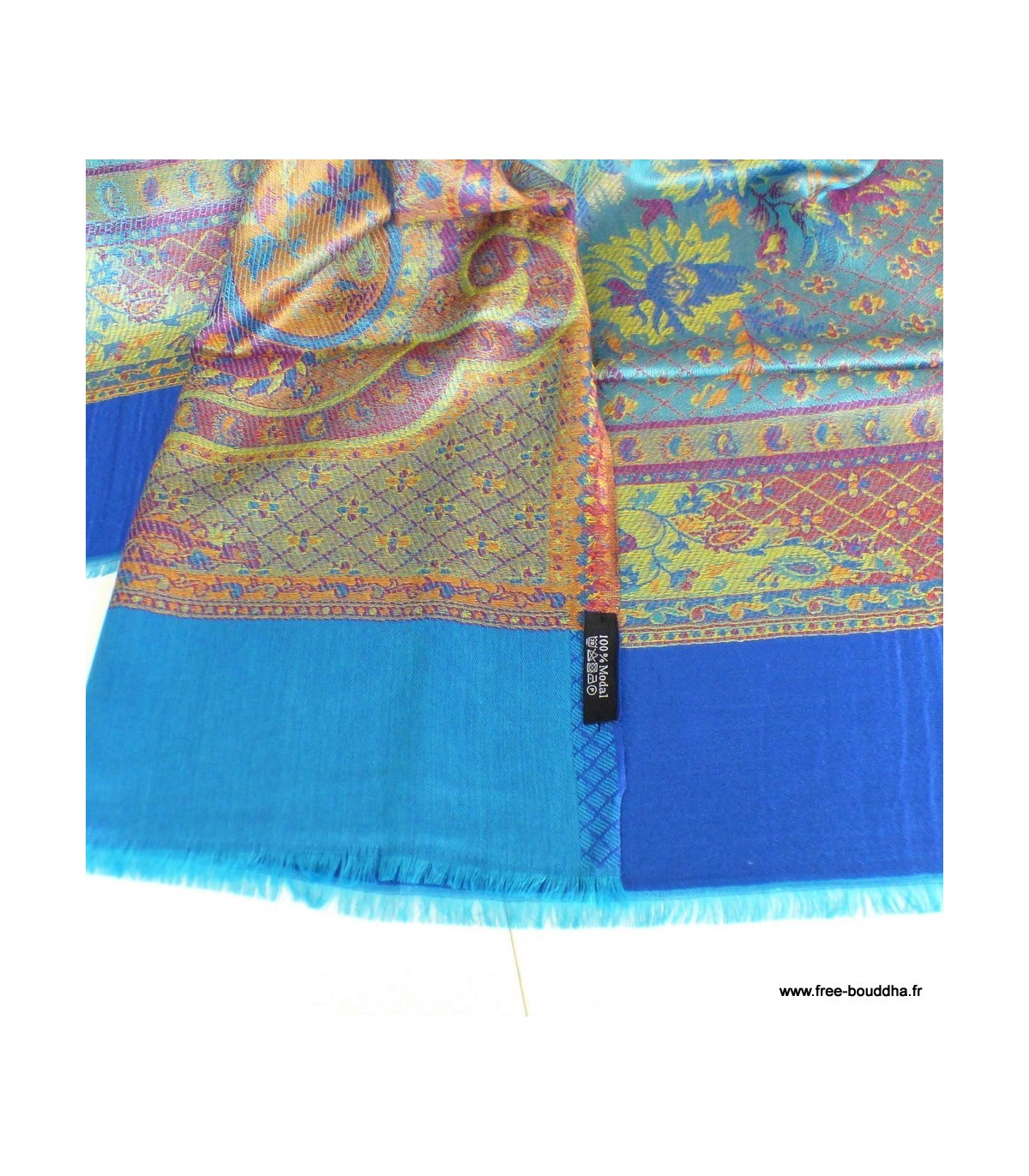 Châle bambou écologique turquoise rouille – 190 x 70 cm